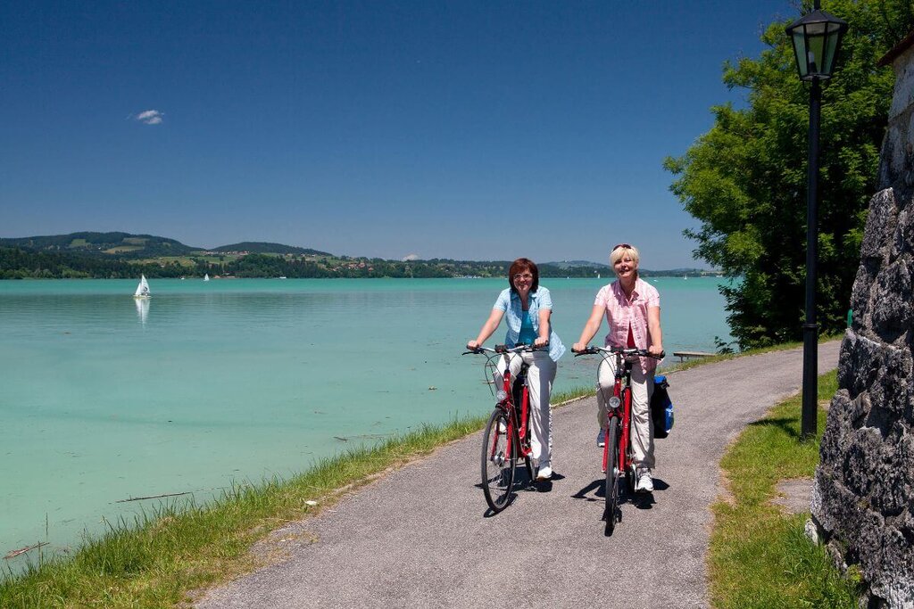 <Von München startet die Tour mit einer Fahrt durch den Forstenrieder Park bis an den Starnberger See. Danach führt der Radweg direkt am Seeufer bis nach Seeshaupt. Auf herrlichen Wegen radelnd durch urige bayerische Orte, vorbei an den Osterseen und dem Riegsee, nach Murnau am Staffelsee. -