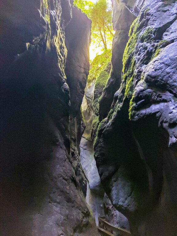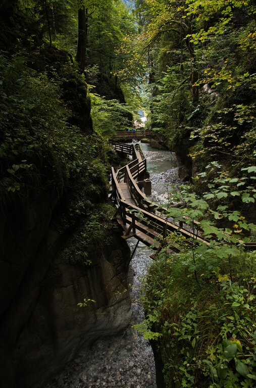 <Am Morgen fährst du mit dem Bus hinauf zum Hintersee. Vor der beeindruckenden Kulisse des mächtigen Hochkalter wanderst du auf gut begehbaren Wegen zur Passhöhe Hirschbichl. Hier überschreitest du die Grenze nach Österreich und steigst anschließend über Wiesen und durch dichte Wälder hinab zur Seisenbergklamm. Die ersten unbefestigten Wege durch die Klamm wurden bereits 1831 angelegt und dienten damals ausschließlich den Triftknechten für den Holztransport. Heute führen sichere Holzstege und -treppen durch die Klamm, von denen aus du die beeindruckenden Wasserspiele des Weißbachs hautnah beobachten kannst.