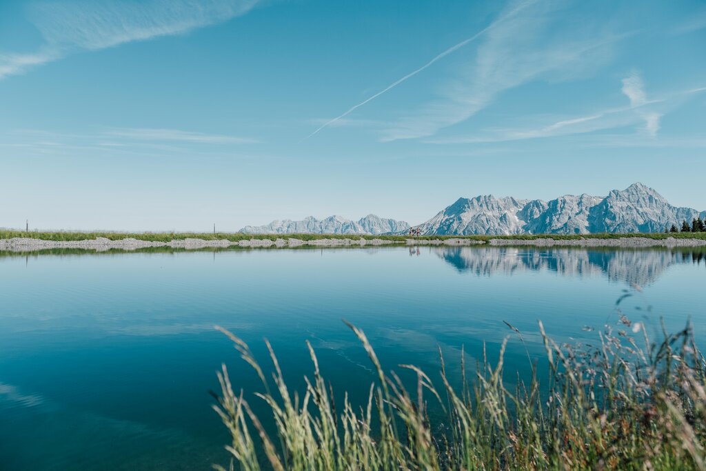 <Die ersten Höhenmeter des Tages überwindest du bequem mit der Asitzbahn, wo deine Wanderung auf 1.762 Metern beginnt. Bald entfernt sich der Höhenweg von den Liftanlagen des Skizirkus und führt dich hinein in die friedliche Welt des naturbelassenen Hochmoors. Wollgras wiegt sich sanft im Wind, während sich der Blick vom Watzmann bis zum Venediger erstreckt. Auf dem stetigen Auf und Ab des Höhenwegs genießt du die Aussicht in alle Richtungen.