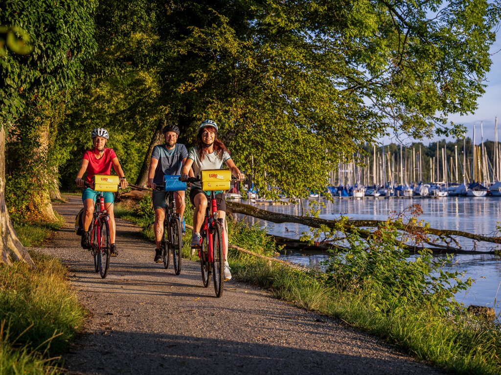 <Heute wird der wohl bekannteste bayerische See umrundet. Der pittoreske Radweg führt von einem Seeort zum nächsten, vorbei an den Villen der bayerischen Prominenz, an schattigen Gastgärten und verträumten Badebuchten. Genießen Sie die Idylle – das ist Erholung pur!