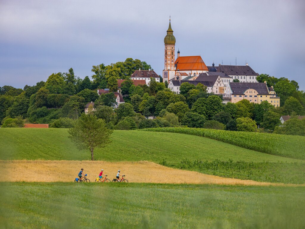 <Von München zunächst durch den Forstenrieder Park. Dieses ehemalige Jagdgebiet der Wittelsbacher ist mit 2.100 Hektar Fläche ein Paradies für Naturliebhaber. Über Gauting geht es dann am Königlich-Bayerischen Radweg leicht hügelig Richtung Ammersee. Am Weg liegt davor aber noch das herrschaftliche Kloster Andechs. Stärken Sie sich mit einer Maß Bier, bevor es in rauschender Abfahrt hinunter ans Seeufer geht. Danach gemütliche Schifffahrt von Herrsching nach Dießen (Saisonzeiten ab ca. 01.05.). Übernachtungsorte sind Herrsching oder Dießen. -