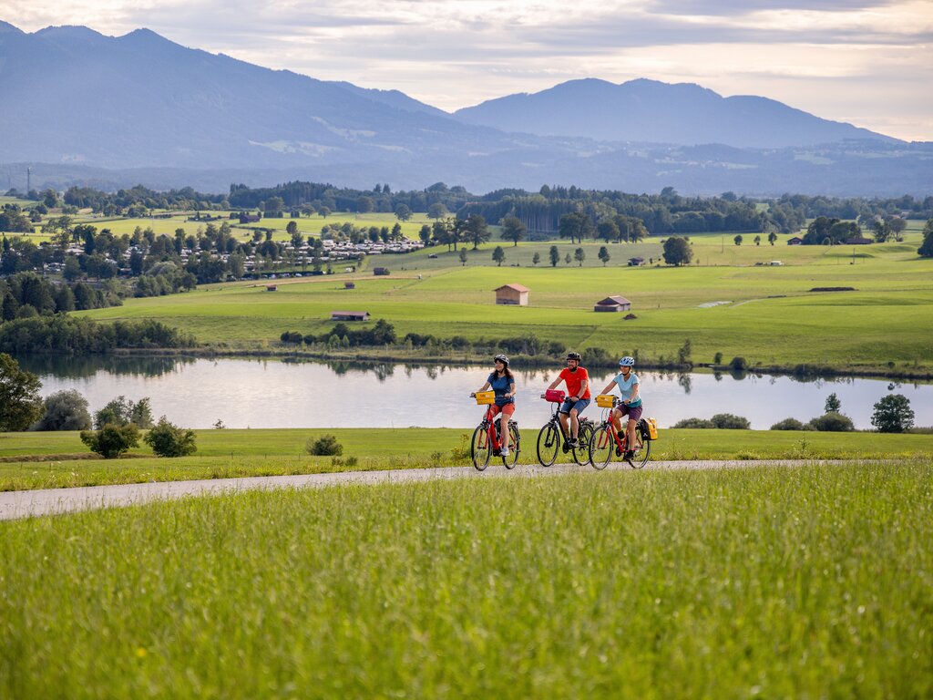 <Die Etappe führt Sie zunächst an die idyllischen Osterseen – eine Kette aus 19 Gewässern. Wagen Sie den Sprung ins kühle Nass oder relaxen Sie am Ufer. Durch urtümliche bayerische Orte und an den Ufern des Riegsees entlang erreichen Sie Murnau mit seinem schönen Stadtplatz. Vorbei am Murnauer Moos und dem bekannten Pferdegestüt Schwaiganger taucht schon bald der Kochelsee auf. Ein Besuch des Franz Marc Museums ist besonders empfehlenswert!