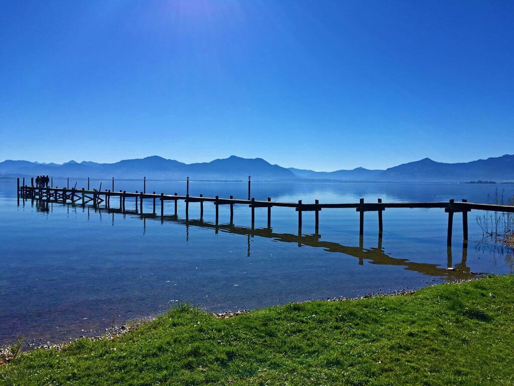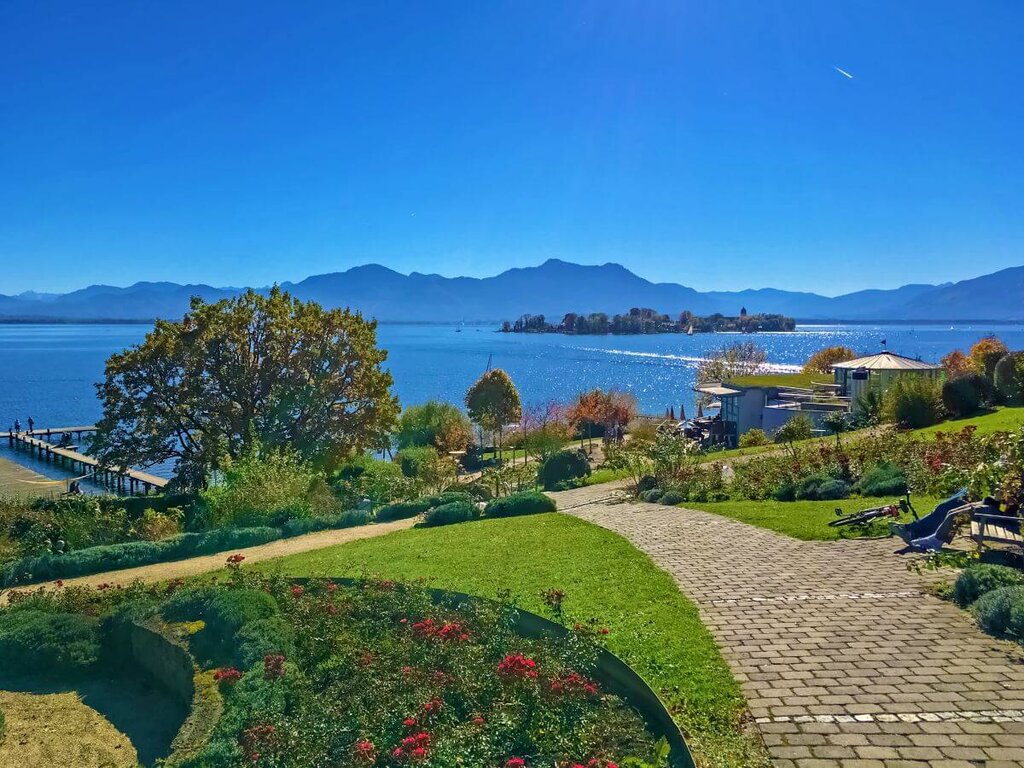 <Das „Bayerische Meer“ bietet viele Möglichkeiten für die Gestaltung eines wunderschönen Tages. Mit dem Schiff (fakultativ) gelangt man zu den Inseln Herrenchiemsee (König-Ludwig-Schloss) und Frauenchiemsee. Per Rad kann man den gesamten See umrunden (ca. 60 km). Hier sind Teiletappen auch per Schiff oder mit einem speziellen Radbus möglich (fakultativ). Natürlich sorgen auch viele Bademöglichkeiten für einen entspannten Tag. -