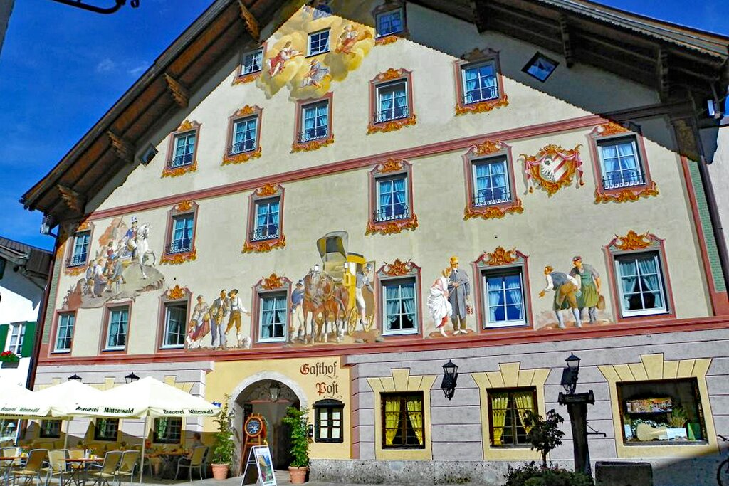 <Die berühmte Olympiastadt Garmisch-Partenkirchen lockt zur Erkundung: entdecken Sie die schöne Fußgängerzone, die traditionell bemalten Häuser und gemütliche Biergärten. -