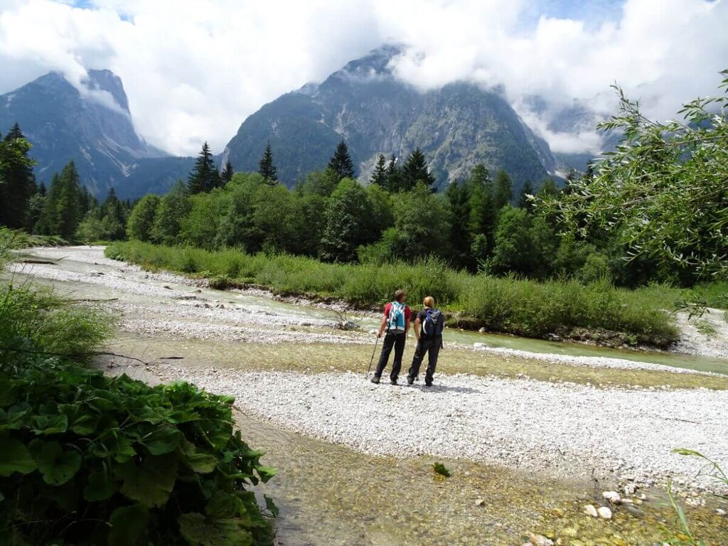 <Vorbei an der bekannten Skisprungschanze und durch die beeindruckende Partnachklamm, wo sich tosende Wassermassen tief in den Fels eingegraben haben. Über den Wamberg wandern Sie zur Elmauer Alm und durch blühende Wiesen und Täler zu Lauter- und Ferchensee. Übernachtet wird in Mittenwald, dem Ort des Geigenbaues und der Lüftlmalerei. -
