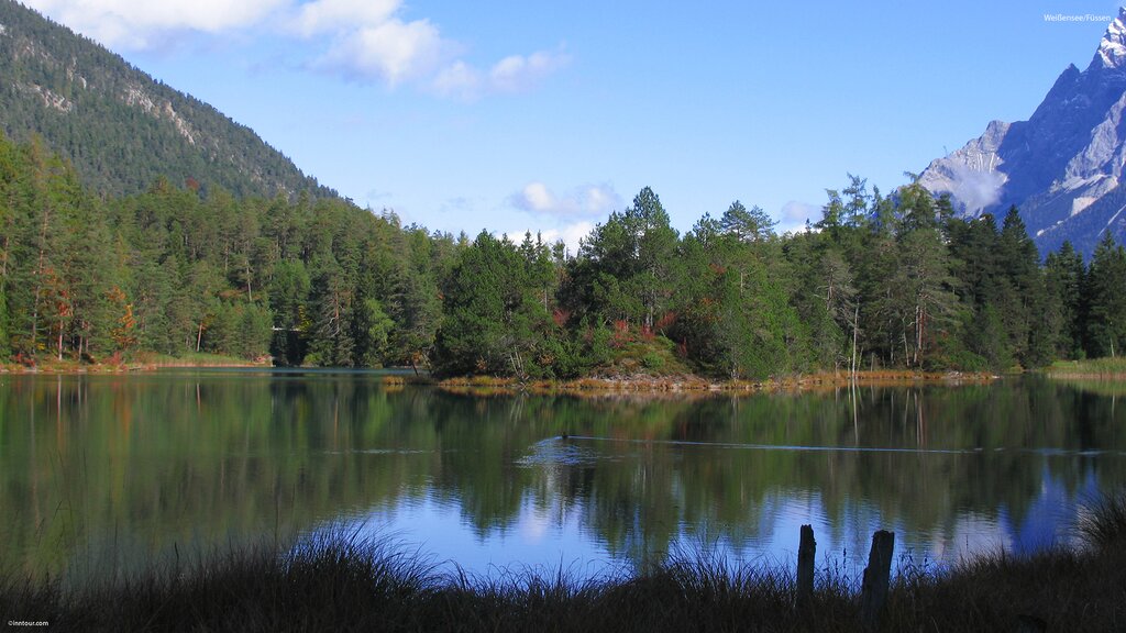 <Von Schongau aus führt der Weg weiter entlang dem Lech Richtung Tirol und somit dem mächtigen Alpenbogen entgegen. Noch vor der österreichischen Grenze wartet bei Füssen das „Märchenschloss“ Neuschwanstein auf seine Besucher. -