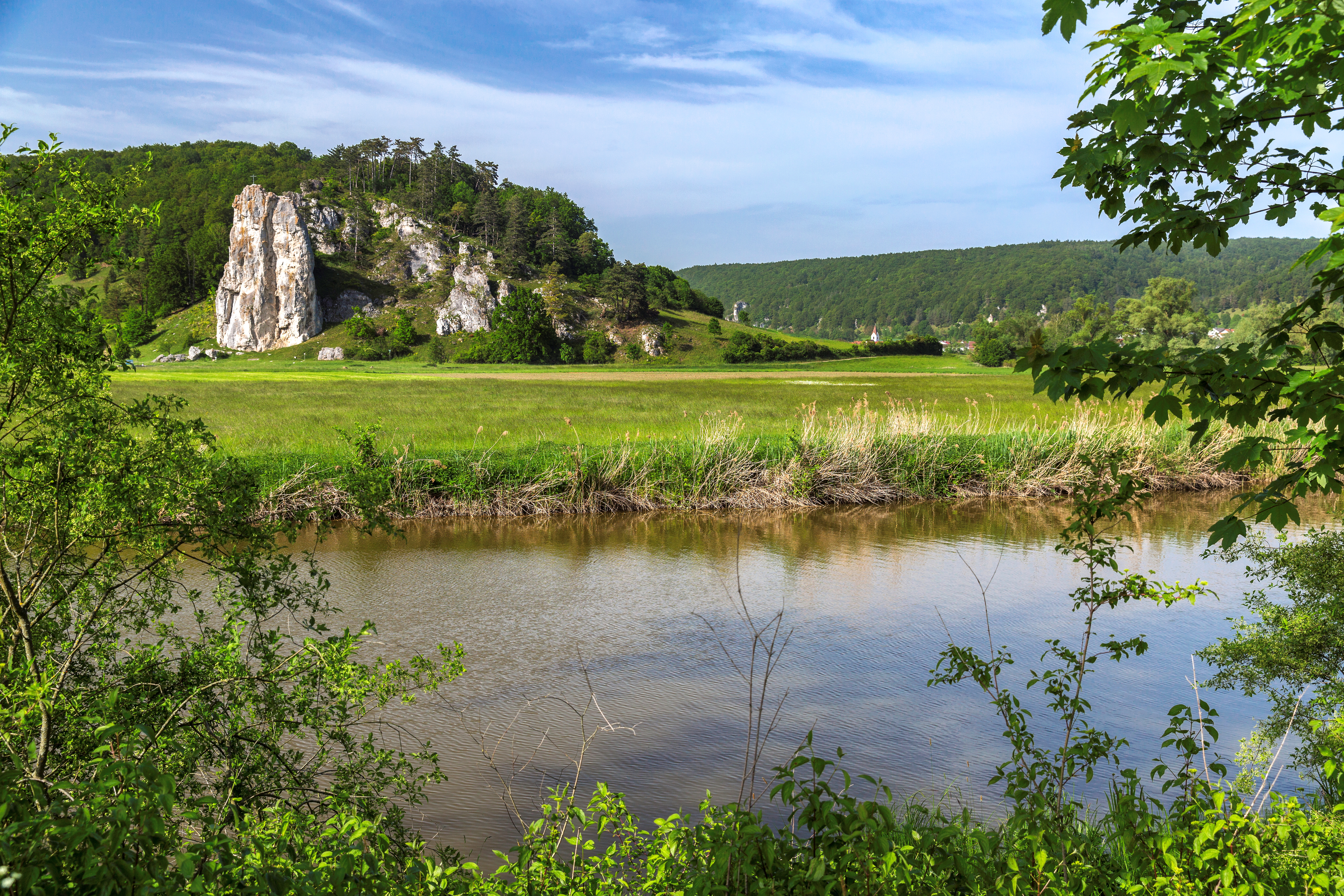 <Auf der heutigen Etappe verengt sich das Tal, die Altmühl schneidet sich tief in die Jurafelsen und die 12 Apostel, eine eindrucksvolle Felsformation, wollen von Ihnen bestaunt werden. Immer wieder passieren Sie mächtige Burgen auf dem Weg nach Eichstätt, das sich als ehemalige Bischofsstadt im lieblichen Barock präsentiert. -