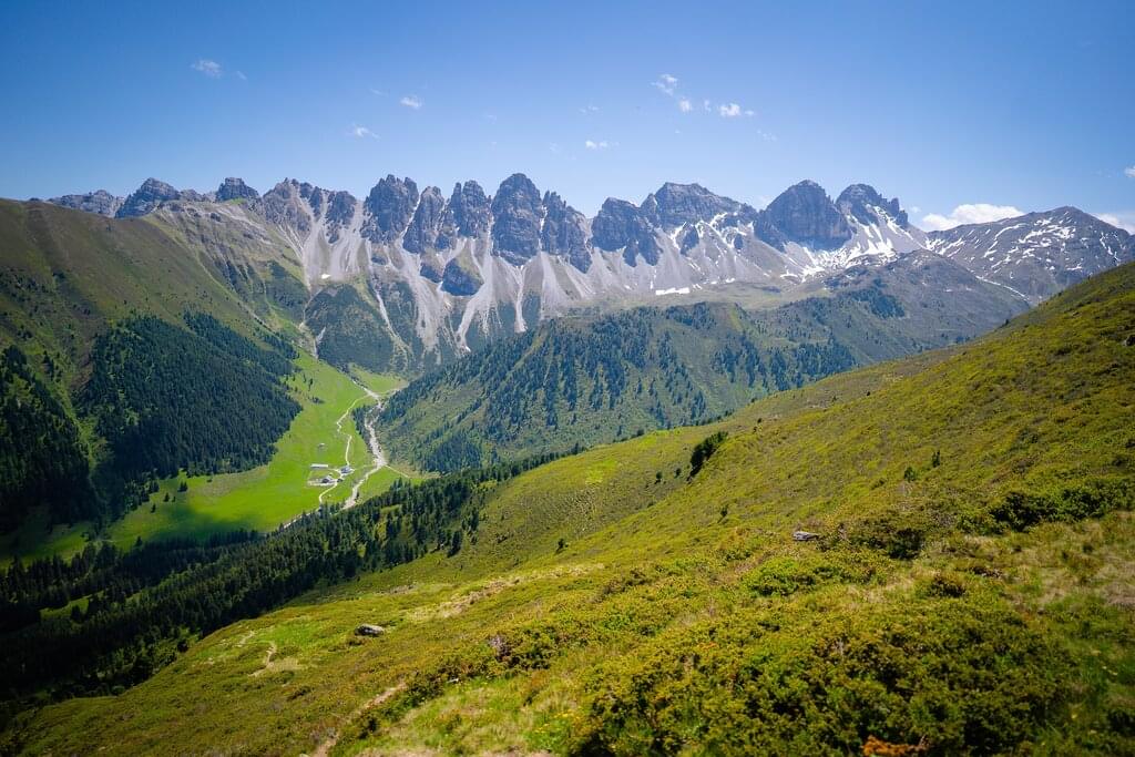 <Mit einem Transfer fährst du nach Südtirol zur Rosskopfseilbahn, die dich hinauf auf fast 1.900 Meter bringt. Von dort führt ein aussichtsreicher Höhenweg mit sanften Anstiegen zu den Telfer Almen, bevor es am Nachmittag mit dem Linienbus nach Sterzing geht. Diese Etappe ins Ridnauntal verlangt gute Trittsicherheit und gilt als die anspruchsvollste der Reise. Wer es gemütlicher mag, wählt die Route bis zur Ochsenalm und kehrt von dort zurück. Anschließend geht es mit der Seilbahn nach Sterzing, wo dein Hotel im Herzen der nördlichsten Stadt Italiens liegt.