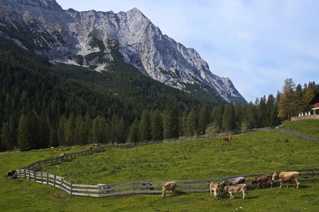 <Heute steht ein beeindruckendes Gipfelerlebnis auf dem Programm. Mit der Zahnradbahn geht es von Garmisch-Partenkirchen direkt ins Zugspitzmassiv. Wer möchte, kann bei klarer Sicht zunächst das Zugspitzplatt erkunden, den höchsten Punkt Deutschlands – 2962 Meter über dem Meeresspiegel mit Rundumsicht auf die Ostalpen. Danach geht es wieder mit der Seilbahn bergab und dein Weg führt dich über die Westseite des Berges zur bayerisch-tirolerischen Grenze und weiter über blühende Almwiesen und dem Plattenweg direkt nach Ehrwald bis zu deiner Unterkunft.