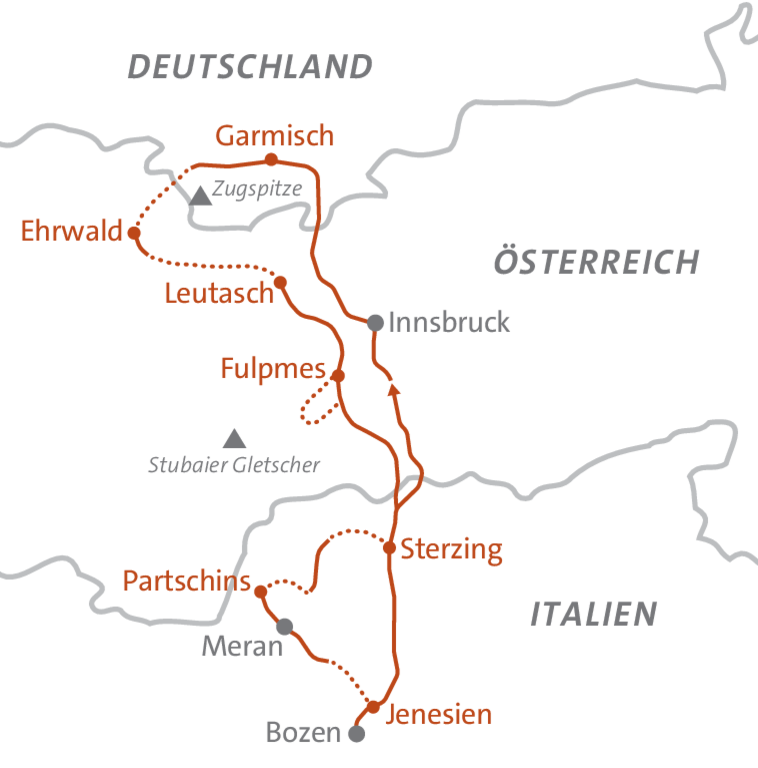 - Transfer zum Ausgangspunkt nach Mölten an Tag 7