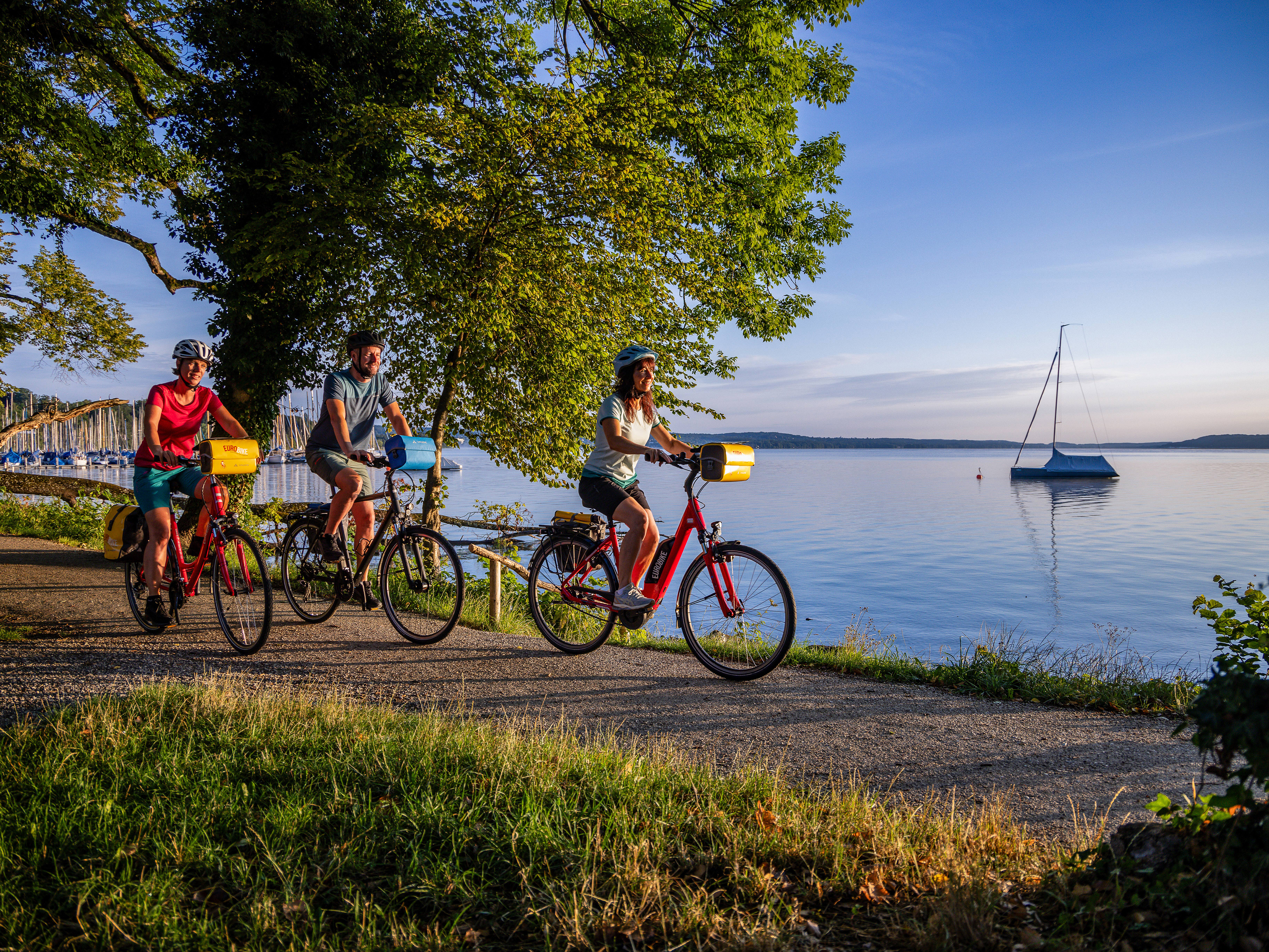 <Sie starten in München und radeln durch den Forstenrieder Park an den Starnberger See. Ein wunderschöner Radweg am Seeufer führt nach Seeshaupt und weiter durch pittoreske Dörfer, vorbei an den Osterseen und dem Riegsee nach Murnau am Staffelsee.