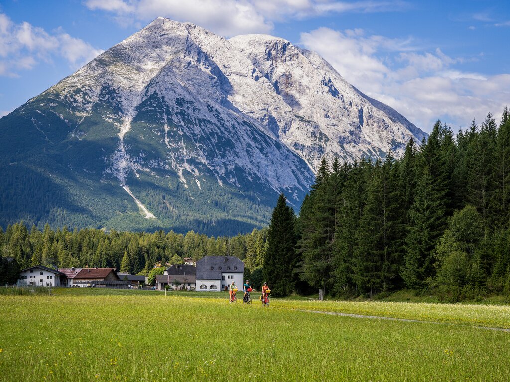 <Durch das Naturschutzgebiet Murnauer Moos dem Fluss Loisach folgend nach Garmisch-Partenkirchen. Weiter am schön angelegten Radweg geht’s bis zur Isar. Durch das sonnige Hochtal mit herrlichen Panoramen radeln Sie nach Mittenwald. Hier sollten Sie jedenfalls eine Rast einlegen und durch den mit Lüftlmalerei verzierten Ort schlendern. Spektakulär geht’s danach weiter durch das Leutaschtal nach Österreich. Entlang des Leutascher Baches radeln Sie durch das wunderschöne Tal bis in Ihren Übernachtungsort.