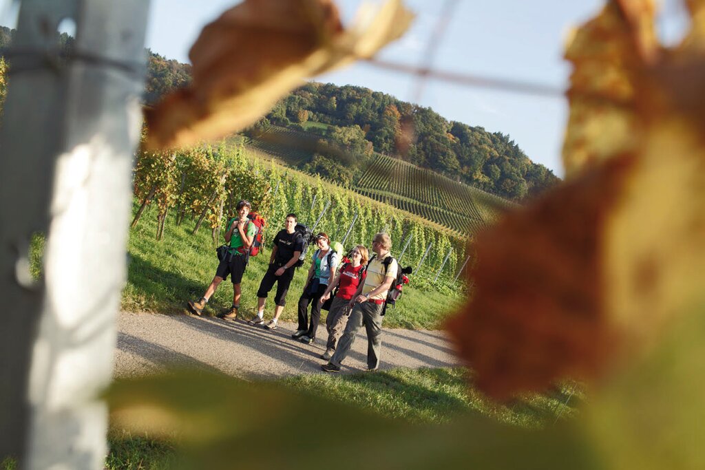 <Mit Blick hinunter auf die Basler Bucht beginnt der Tag, bevor Sie in die Markgräfler Weinwelt eintauchen. Der Weg führt durch stattliche Weinberge und Streuobstwiesen, am Waldrand entlang und auf der historischen Römerstraße. Ausblicke in die Rheinebene, ins Elsass und bis ins Schweizer Jura charakterisieren die Etappe, während sich im Osten majestätisch der „Blauen“ erhebt, der gut an seinem charakteristischen Turm zu erkennen ist. Ab und zu huscht eine kleine Eidechse über den Weg. Und unterwegs erwarten Sie im Frühjahr tausende von Buschwindröschen. In Bad Bellingen angekommen, nehmen Sie die Regionalbahn nach Müllheim. Sie werden am Bahnhof in Müllheim vom Hoteltransfer abgeholt. -