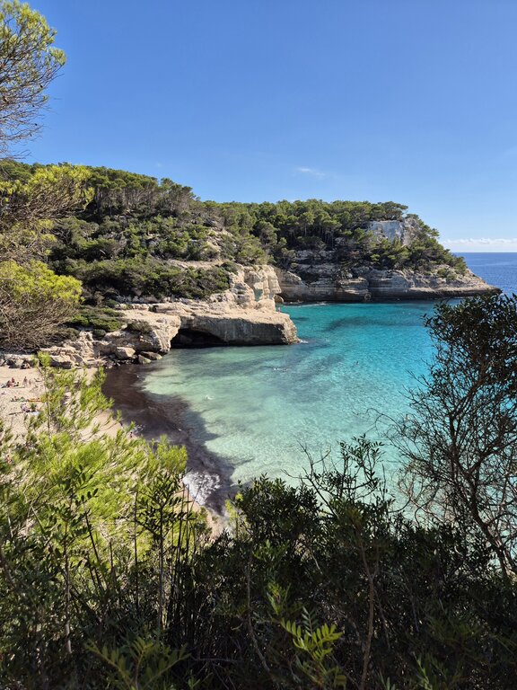 <Heute ist einer der spektakulärsten Tage unserer Wanderung durch die türkisfarbene Buchten von Menorca. Wir wandern zuerst nach Cala Galdana, um nach Cala Macarella und Macarelleta zu gelangen, wo viele Wassertiere im Schilf von Santa Anna koexistieren. Dann überqueren wir wilde Oliven- und Wacholderwälder und erreichen die Dünen des paradiesischen Strandes von Cala en Turqueta. Entlang der Route passieren wir Schutzgebiete mit felsigen Gebieten, die von Schluchten und Bächen durchschnitten werden. Bevor Sie in Son Saura ankommen, nehmen Sie sich Zeit, um in Cala Talaier, fast im Paradies, zu entspannen. Transfer von Son Saura zum Hotel in Ciutadella.