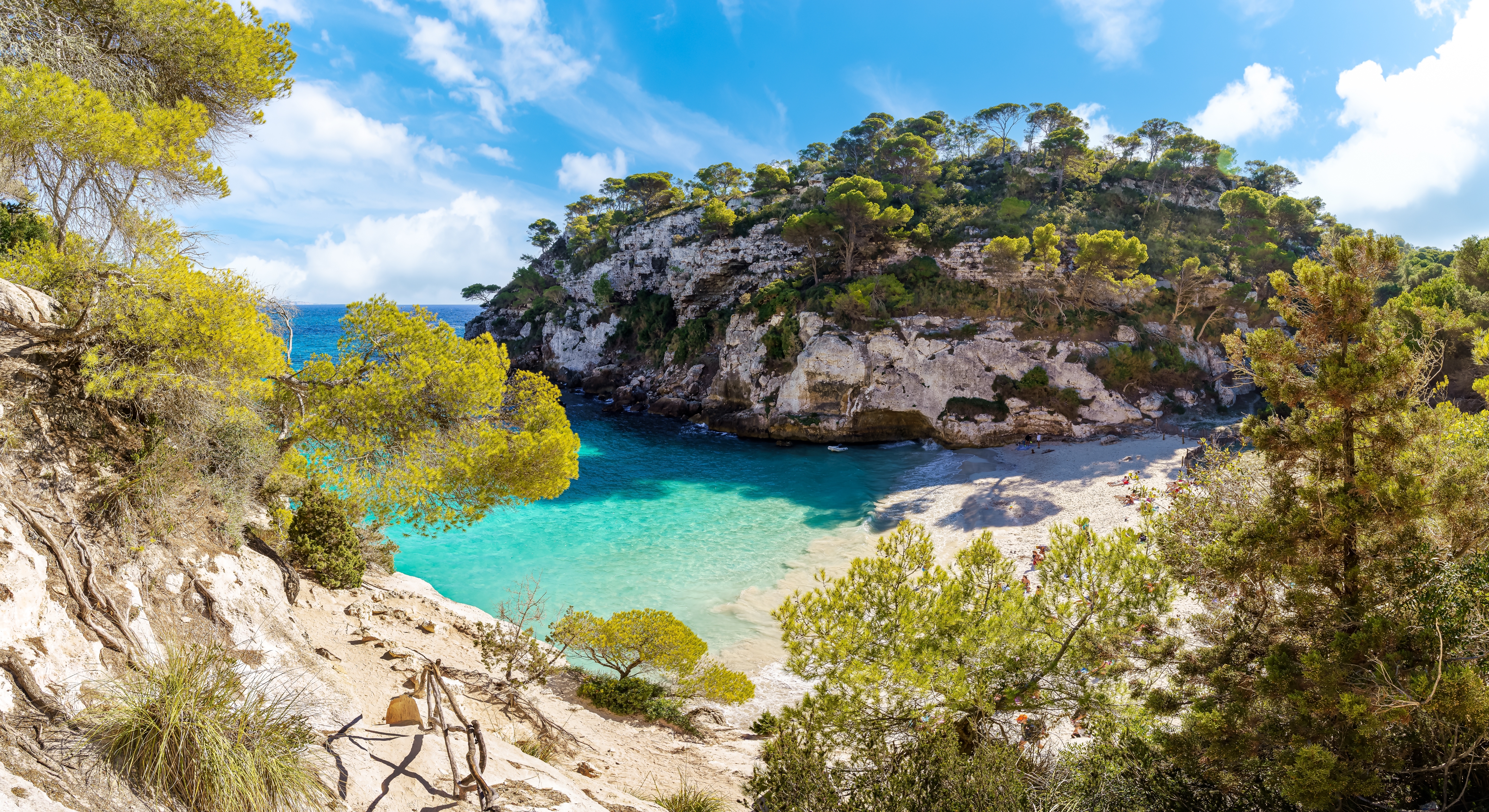 <Heute ist bekannt als die Wanderung der Schluchten, weil wir die wichtigsten und spektakulärsten Schluchten der Insel überqueren werden. Wir verlassen das Hotel, um den Strand von Sant Tomàs und Sant Adeodat zu überqueren und zum Strand von Binigaus zu gehen. Zu Beginn unserer Wanderung können wir die Höhlen von Es Coloms besuchen. Wir werden durch die Anbauflächen von Binigaus, die Schluchten von Trebalúger und Es Calafat gehen. Dann wandern wir weiter bis zur idyllischen Cala Mitjana, die Cala Mitjaneta vorausgeht. Wir werden dem Weg folgen, bis wir nach Cala Galdana kommen. In der Algendar-Schlucht von Cala Galdana werden wir eine Vielzahl von Vögeln beobachten und Höhlen und Grotten erkunden.