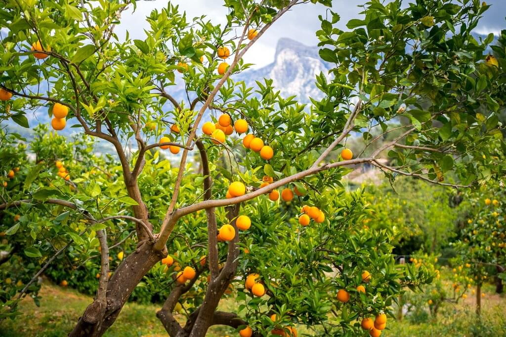 <Deine erste Wanderung führt dich ins berühmte „Sonnental“ Mallorcas: die fruchtbare Senke von Sóller, bekannt für ihre Zitronen- und Orangenhaine, eingerahmt von beeindruckenden Gipfeln wie Puig Migdia, L’Ofre und Cornador.