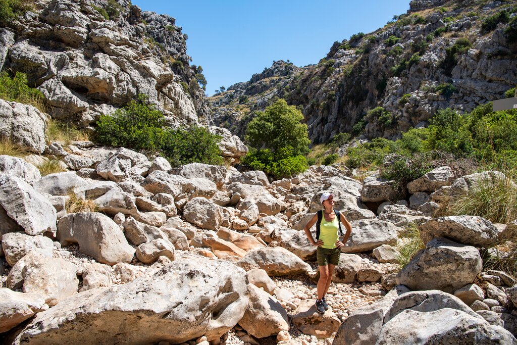 <Heute erwartet dich eine der spektakulärsten Schluchten Mallorcas: die Schlucht von Biniraix. Einst legten Pilger, die vom Tal von Sóller zum Inselheiligtum Lluc unterwegs waren, den Weg mit Steinen aus – ein Pfad, den wir Wanderer bis heute nutzen.