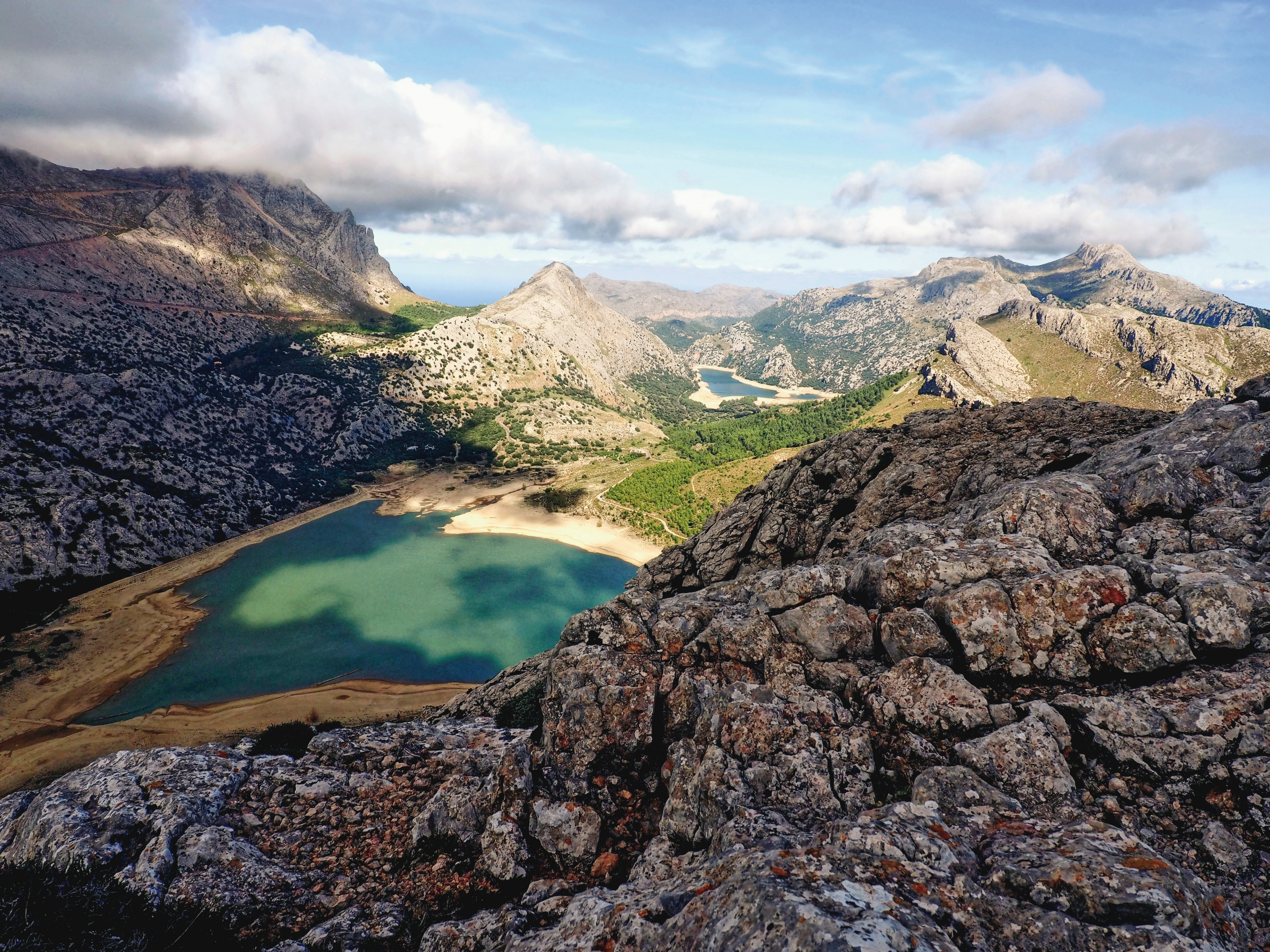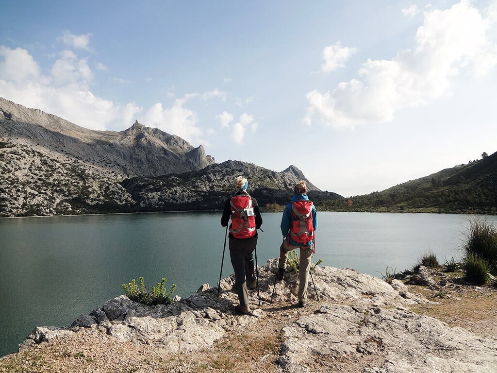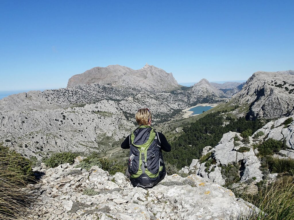 <Morgendlicher Transfer zum Cuber Stausee, wo Sie eine weitere Etappe am Pilgerweg nach Lluc begehen werden. Ihr Weg führt hoch hinauf in die Serra und über die Pässe hinunter nach Lluc. Eine interessante Landschaft mit hohen Gräsern, Felsen und Übergängen wie im Hochgebirge liegt vor Ihnen. Die sonnigen Ausblicke auf die Steilküsten und die fruchtbaren Täler machen diese Tour zur Königsetappe. Zurück geht es zur Übernachtung ins Kloster Lluc. -