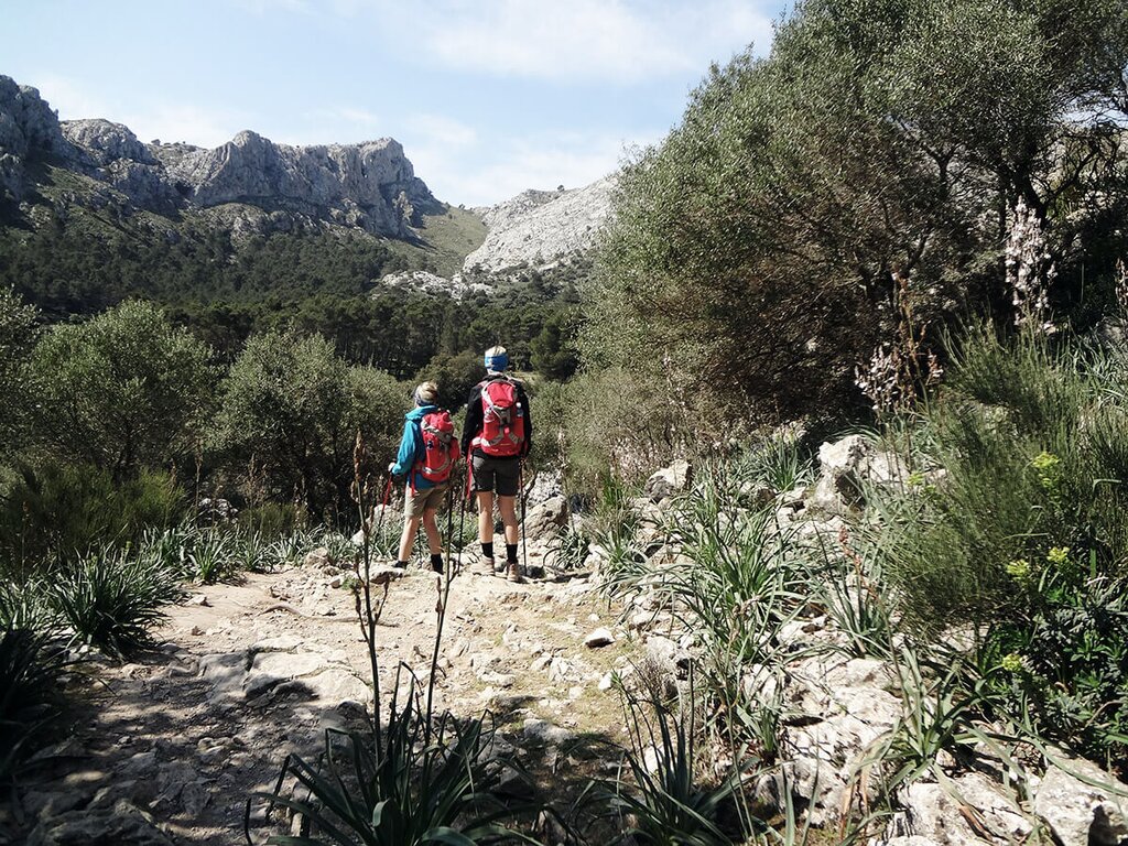 <Kurzer Transfer nach Pollença, wo Sie dem historischen Pilgerpfad nach Lluc folgen werden. Die hohen Gipfel der Serra de Tramuntana vor Augen, wandern Sie über den Pass vorbei am Puig Tomir. Schattige Steineichenwälder, blühende Obstgärten und raue Wiesen ergeben ein abwechslungsreiches Landschaftsbild. Genießer erwandern den botanischen Garten im Kloster Lluc. -