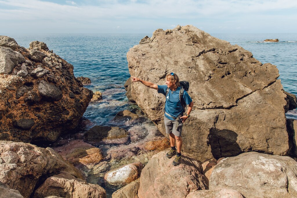 Aufstieg: 300 m / Abstieg: 340 m / Weglänge: 7,5 km / Dauer: 2 h 30Mittlere Variante: Durch lichte Kiefernwälder wanderst du zum Meer hinab. Anschließend folgt ein Abschnitt entlang der Küstenlinie bis zu einem verlassenen Schmugglerpfad, der dir spannende Einblicke in die Vergangenheit bietet.