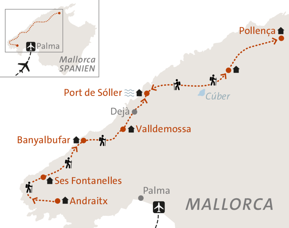 <Du reist individuell auf die Sonneninsel Mallorca an und startest so dein persönliches Wanderabenteuer.