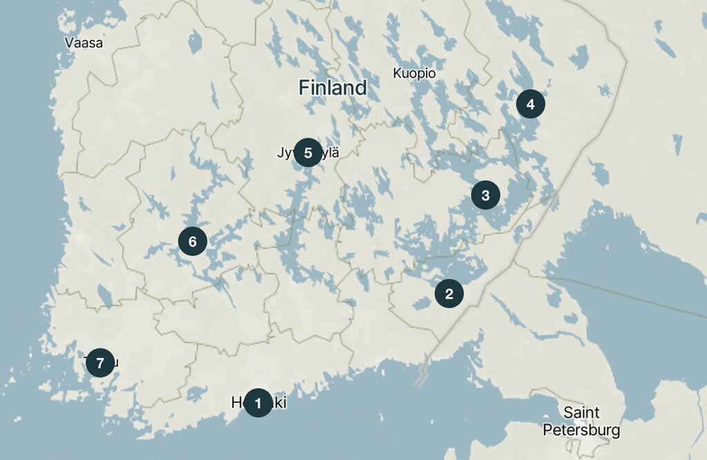 Auf dieser Tour wird das Land der Tausend Seen entdeckt, das einen Einblick in Finnlands ruhige Seenlandschaft und reiche kulturelle Traditionen bietet. Die Reise führt durch historische Städte, friedliche Naturlandschaften und Regionen, die von orthodoxem Einfluss und karelischem Erbe geprägt sind. Jeder Halt wurde ausgewählt, um eine harmonische Verbindung von Natur, Geschichte und regionalem Charakter zu bieten.