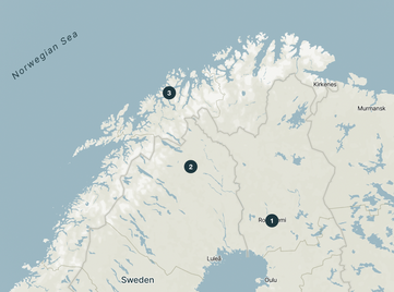 <Frühstück im ICEHOTEL. Transfer zum Bahnhof Kiruna für eine atemberaubende 3,5-stündige Zugfahrt nach Narvik, überquert die Grenze zwischen Schweden und Norwegen. Von Narvik Weiterfahrt mit dem Bus entlang der Arctic Route nach Tromsø. Check-in bei Ankunft und leichtes Abendbuffet im Hotel.