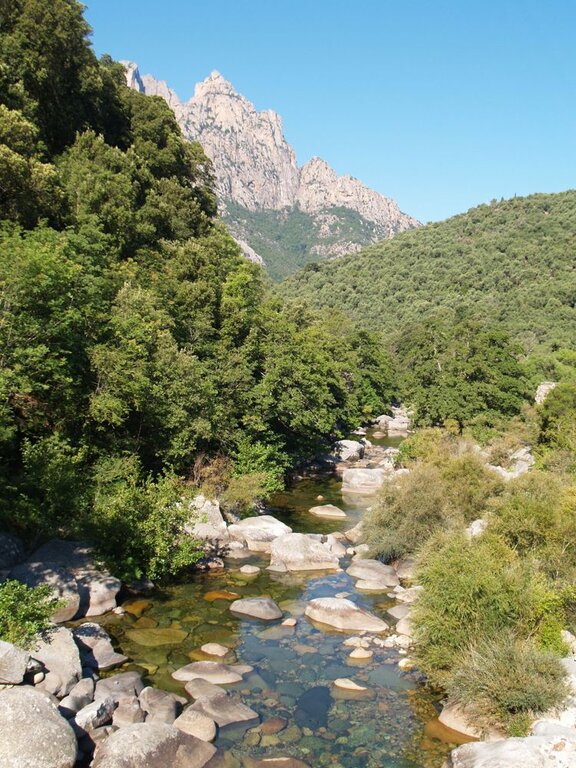 <Ein Transfer bringt Sie an den Start Ihrer Wanderung, durch immergrüne Macchia wandern Sie vorbei an duftenden Sträuchern und überqueren Flüsse auf alten genuesischen Brücken. Der Golf von Porto ist Ihr Ziel, wo Sie 2 Nächte verbringen.