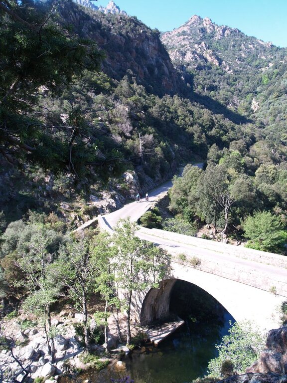 <Heute wandern Sie in das Herz des Verghju-Waldes über genuesische Brücken vorbei an Kastanienmühlen. Kastanienmehl ist ein Grundnahrungsmittel der Insel, aus dem beliebte Spezialitäten der Insel zubereitet werden. Der Weg führt entlang des Golo Flusses durch Schwarzkieferwälder bis zum Castel di Verghju, wo Sie zu Abend essen und eine Nacht verbringen. Optionale Wanderung: Sie fahren mit ihren Gepäck mit nach Verghio und können hier eine kürze Wanderung zu den Sheperd's Huts und den Wasserfall von Radule unternehmen (ca. 4 h). -