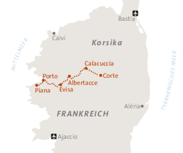 Ein individuelles Erlebnis schönster Gegensätze! Corte, das Herz Korsikas und einstige Hauptstadt der Insel, ist der Startpunkt Ihrer individuellen Wanderreise. Entdecken Sie die Schönheit der stolzen Stadt inmitten des Gebirges, bevor Sie am nächsten Tag mit Ihrer Wanderreise starten. Die nächsten Tage führen Sie auf leisen Pfaden durch die Bilderbuchkulisse Korsikas. Es erwarten Sie tiefe Schluchten, kraftvolle Wasserfälle, duftende Pinienwälder, natürliche Gumpen für erfrischende Pausen und traumhafte Blicke über die Berge und das Meer!