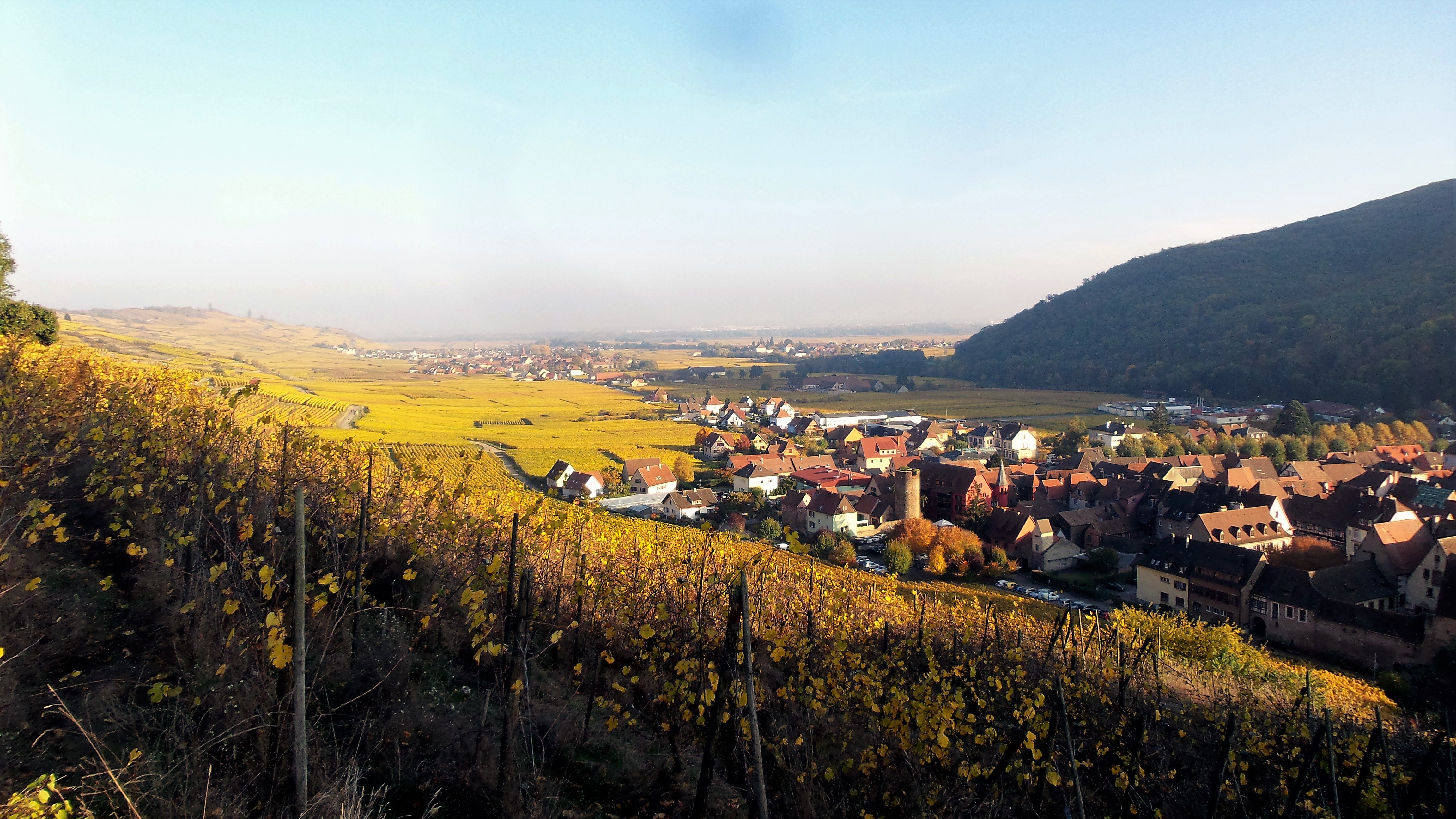 <Der Canal de la Bruche diente einst dazu, Wein von den Weingütern in die elsässische Hauptstadt zu transportieren. Heute verläuft der Radweg entlang des Kanals von Straßburg nach Molsheim. Sie kommen an der romanischen Kirche von Rosheim aus dem 12. Jahrhundert vorbei, bevor Sie in der Region Obernai bleiben.