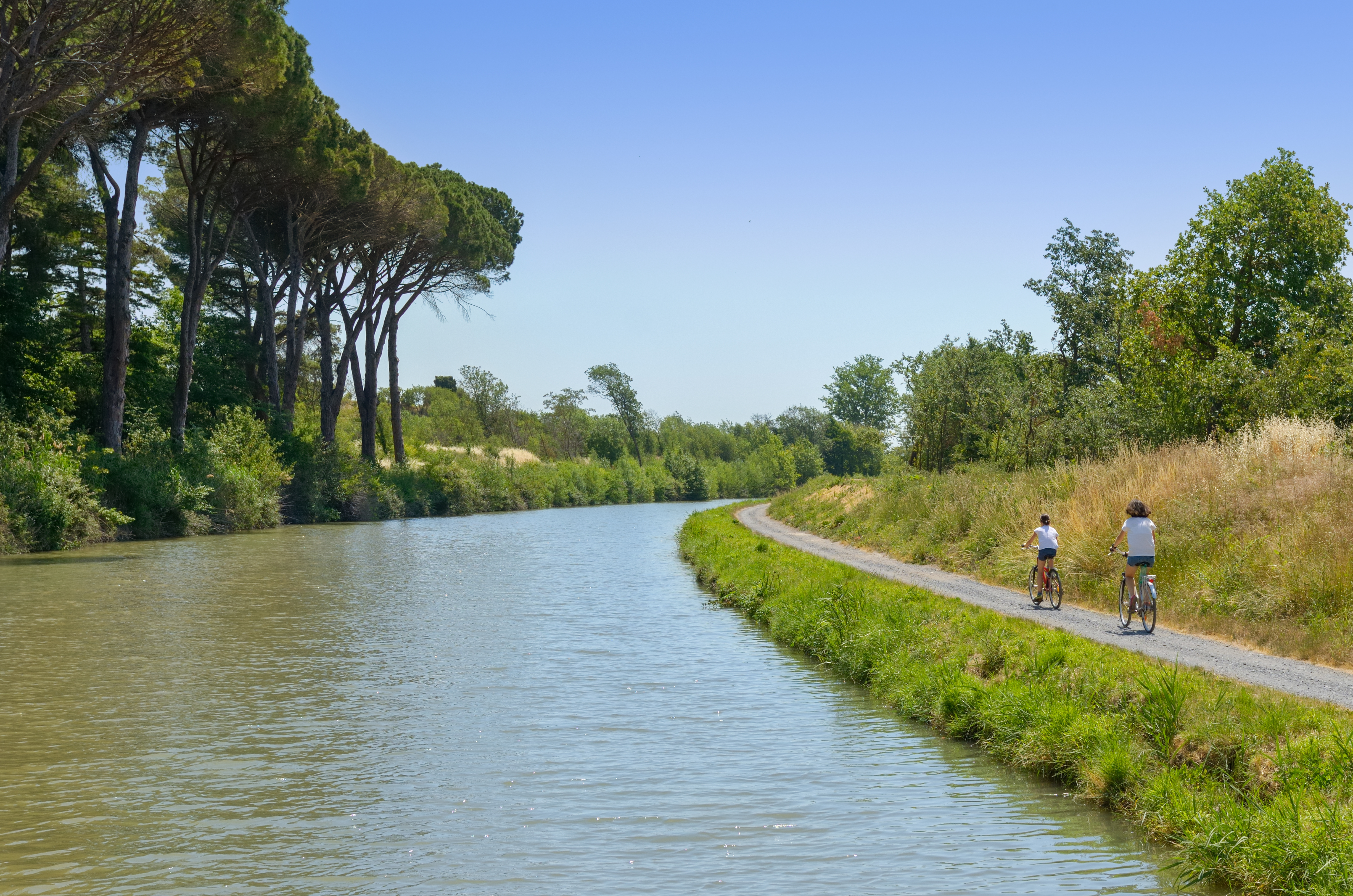 <Nach der Schleuse von Argens folgen Sie dem kurvenreichen Weg entlang des Hügels nach Le Somail. Machen Sie hier eine Pause in der alten Bibliothek. Danach radeln Sie entlang des Canal de la Robine nach Capestang mit seiner Stiftskirche, die schon von weitem schon von weitem sichtbar. Vom Turm aus sehen Sie das Meer und das nahe gelegene Schloss aus dem 14. Unterwegs kommen Sie wieder Unterwegs passieren Sie die gallorömischen Überreste: das Dorf Poilhes la Romaine und das Oppidum d'Ensérune. Bewundern Sie auch den Malpas-Tunnel und die 9 Schleusen von Foncérannes. Sie zeugen von der Genialität des Architekten Paul Riquet, dessen Heimatstadt, das historische Béziers, heute Ihr Ziel ist.