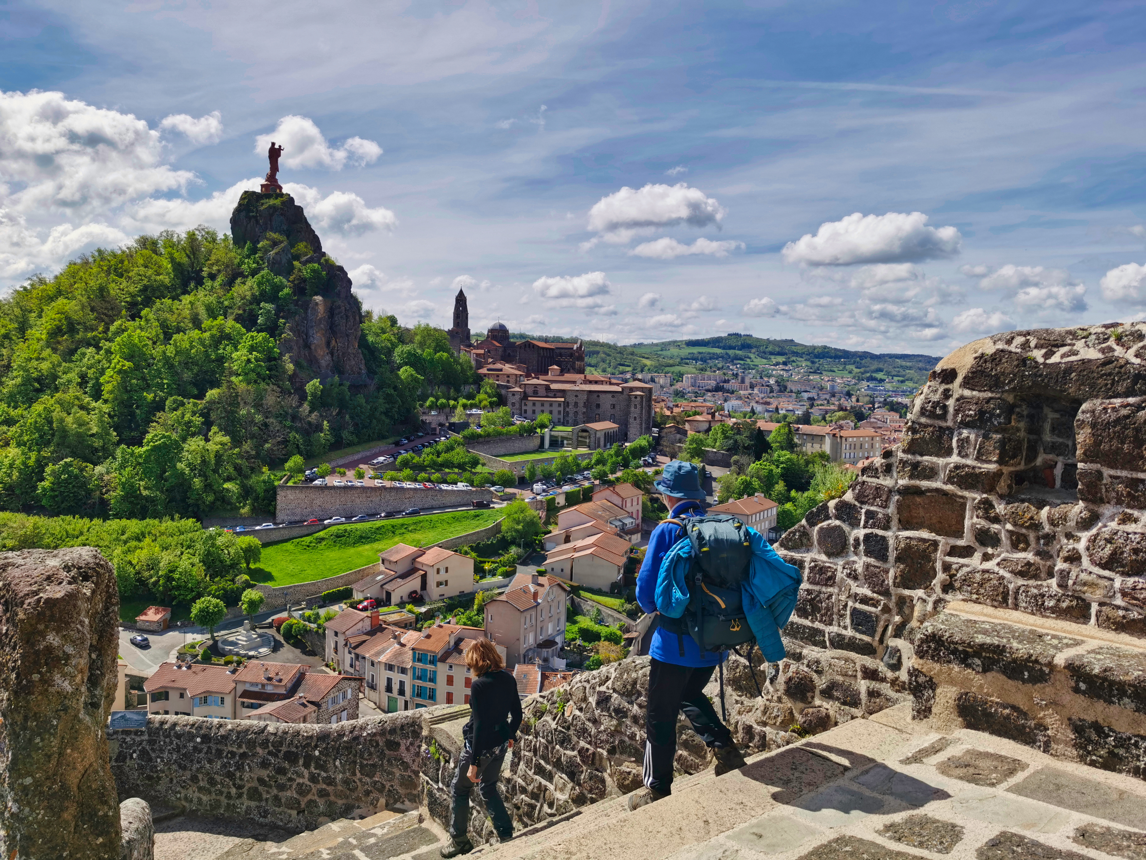 <Der Le Puy Camino oder Via Podiensis ist der Camino-Weg, der im atemberaubenden Le Puy-en-Velay beginnt. Eingebettet zwischen den Vulkanen der Auvergne und dem Rhonetal, ist Le Puy-en-Velay eine charmante kleine Stadt, die Besucher beeindruckt. Starten Sie in dieser faszinierenden Stadt und fühlen Sie sich, als würden Sie in der Zeit zurückreisen, während Sie durch die gepflasterten Straßen der Altstadt schlendern. Genießen Sie einen Spaziergang hinauf zu „Notre Dame de France“ für fantastische Panoramablicke auf die Stadt und die umliegende vulkanische Landschaft.