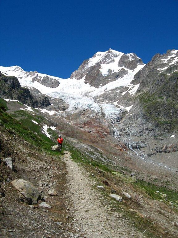 <Nach einem kurzen Transfer bis zur „Notre Dame de la Gorge“, steigen Sie hoch zum Pass „Bonhomme“, dann über das Kreuz « Croix du Bonhomme » ins Tal „Chapieux“. Eine tolle Etappe mitten durch das Gebirge mit herrlichen Aussichten auf die Gletscher.