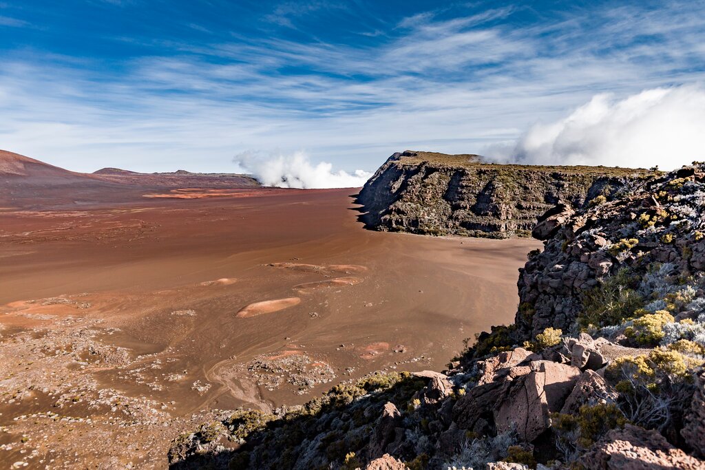 <In der Kühle des Morgens wanderst Du leicht bergauf und gelangen zu den Trois Roches, einem wunderschönen Rastplatz am Ufer des hier tief eingeschnittenen Rivière des Galets. Dann geht es entlang des Flusstales durch schattige Wälder und im Angesicht mächtiger Kraterwände auf ein Hochplateau zur herrlich gelegenen Berghütte von Marla, wo Du die kommende Nacht verbringst. -