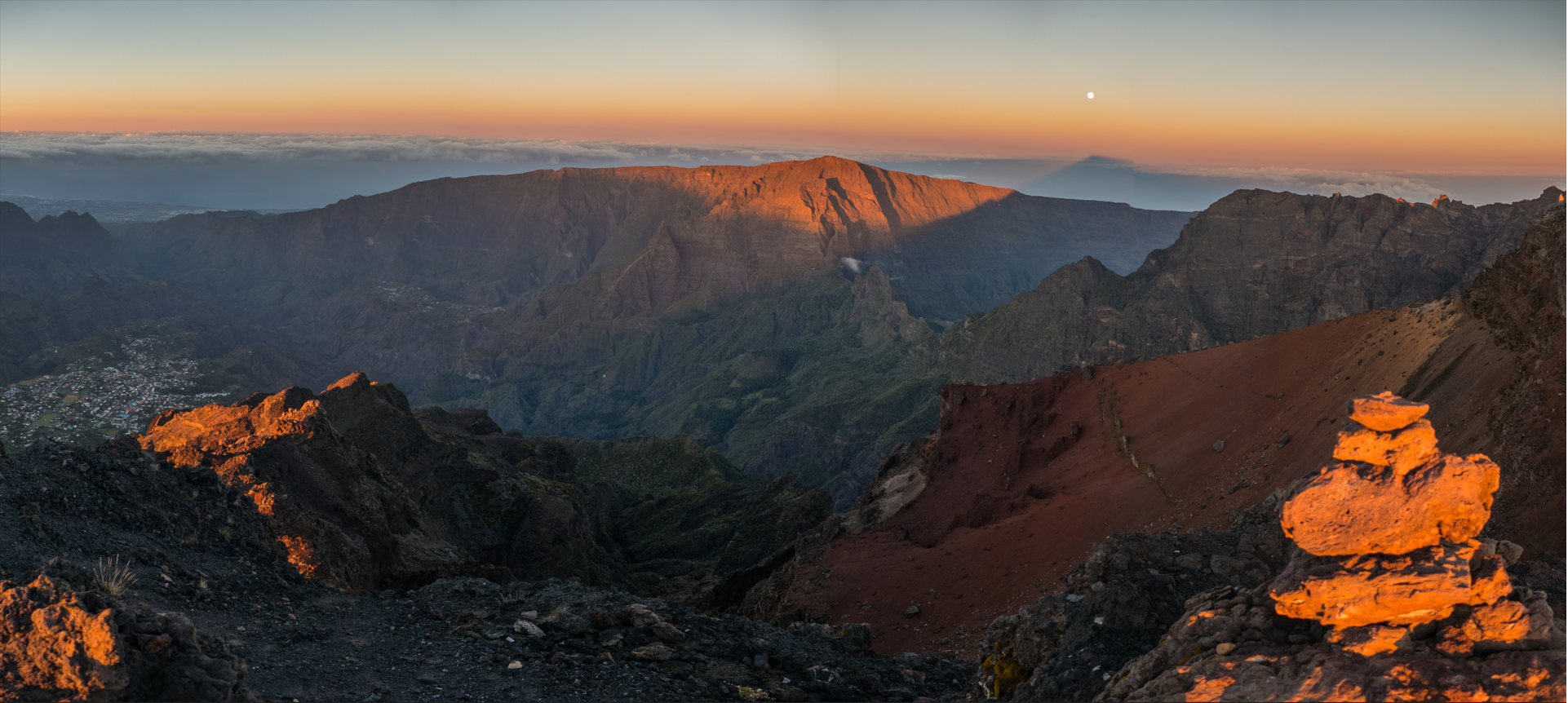 Die Wanderung führt Sie zum La Roche Ecrite, einem 2276 Meter hohen Gipfel, der oft als der schönste Aussichtsberg der Insel bezeichnet wird. Vom Gipfel aus haben Sie eine atemberaubende Aussicht über die zerklüfteten Talkessel Mafate und Salazie sowie verschiedene Vulkankegel. Bereits der Weg hinauf zum Gipfel ist ein besonderes Erlebnis. Er führt durch dampfenden Regenwald, vorbei an Bäumen, die mit Flechten bedeckt sind.