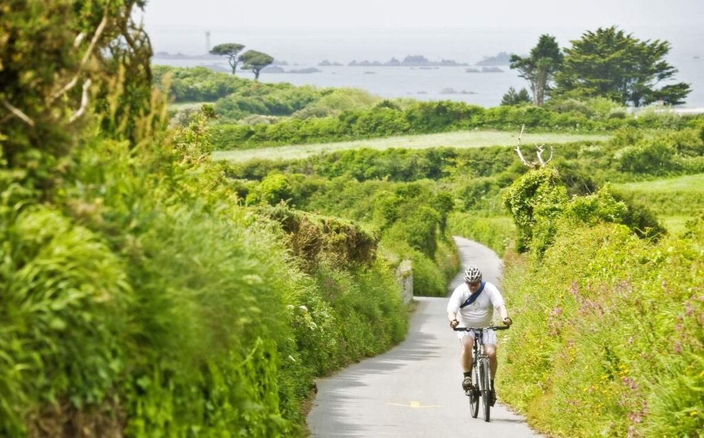 <Abhängig von Ihrer gebuchten Hotelvariante legen Sie an den kommenden Tagen rund 20-40 Kilometer und ca. 200-400 Höhenmeter auf und ab mit dem Rad zurück. Auf Guernseys sogenannten Ruettes Tranquilles können Sie perfekt das grüne Herz der Insel mit seinen Erdwällen entdecken. Auf den Ruettes Tranquilles gilt eine Geschwindigkeitsbeschränkung und Wanderer, Radfahrer und Reiter genießen Vorrang. Radeln Sie entlang Guernseys Nordküste und genießen Sie die abwechslungsreiche Landschaft mit tollen Küstenblicken und sich durch die Landschaft schlängelnden Straßen. -