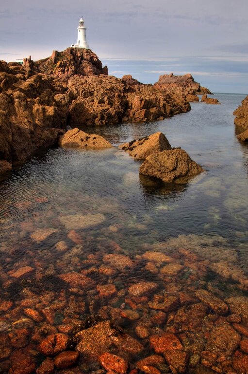 <Vorbei am Royal Channel Islands Yacht Club folgen Sie der schmalen Straße zum Somerville Hotel und über Green Lanes (La Rue de Haut) zum Noirmont Point. Die Gegend ist geprägt von den Hinterlassenschaften der deutschen Besetzung während des Zweiten Weltkrieges. Durch malerische Buchten hindurch erreichen Sie den südwestlichsten Punkt der Insel, markiert durch Leuchturm von La Corbiere. Sofern es die Gezeiten zulassen, können Sie bis zum Felsen des Turmes wandern - bei Flut ist der Zugangsweg meterhoch unter Wasser. -
