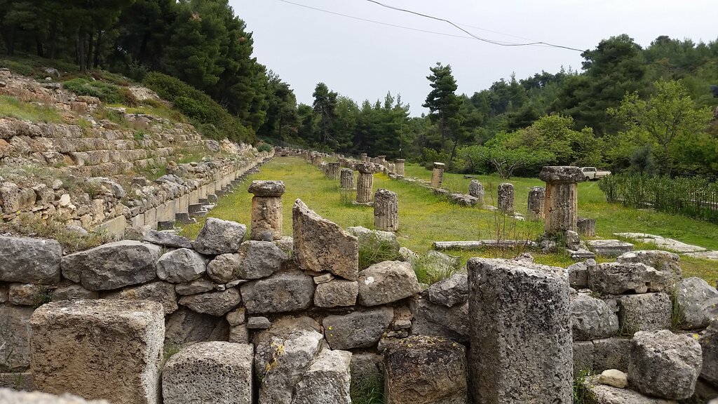 <Je nach Lust und Laune können Sie heute zwischen zwei Optionen wählen. Sie nehmen die Fähre von Eretria über den Golf von Evia nach Oropos auf dem Festland, eine Überfahrt von ca. 30 Minuten. Von Oropos aus fahren Sie landeinwärts. Ein kurzer steiler Anstieg führt Sie zum Heiligtum Amphiarion, das dem Gott und Helden Amphiaraos gewidmet ist. Er war einer der Argonauten auf der Suche nach dem Goldenen Vlies. Dann geht es bergab durch Weinanbaugebiete und weiter runter zur Küste, an der Sie entlang fahren zurück bis nach Oropos. Sie können die Tour ausdehnen, indem Sie nach Kalamos und dann nach Agioi Apostoloi hinunterfahren, um dann wieder entlang der Küste zurück nach Oropos. Wenn Sie es entspannter angehen lassen wollen, können Sie von Eretria über Nebenstraßen zum Dorf Gymno hochfahren und teilweise über dieselbe Route zurück. Eine angenehme Tour, vorbei an Olivenhainen und Ackerland mit herrlichem Blick auf das Meer. Vor der Tour können Sie noch die antike Stätte von Eretria und die Akropolis besichtigen.