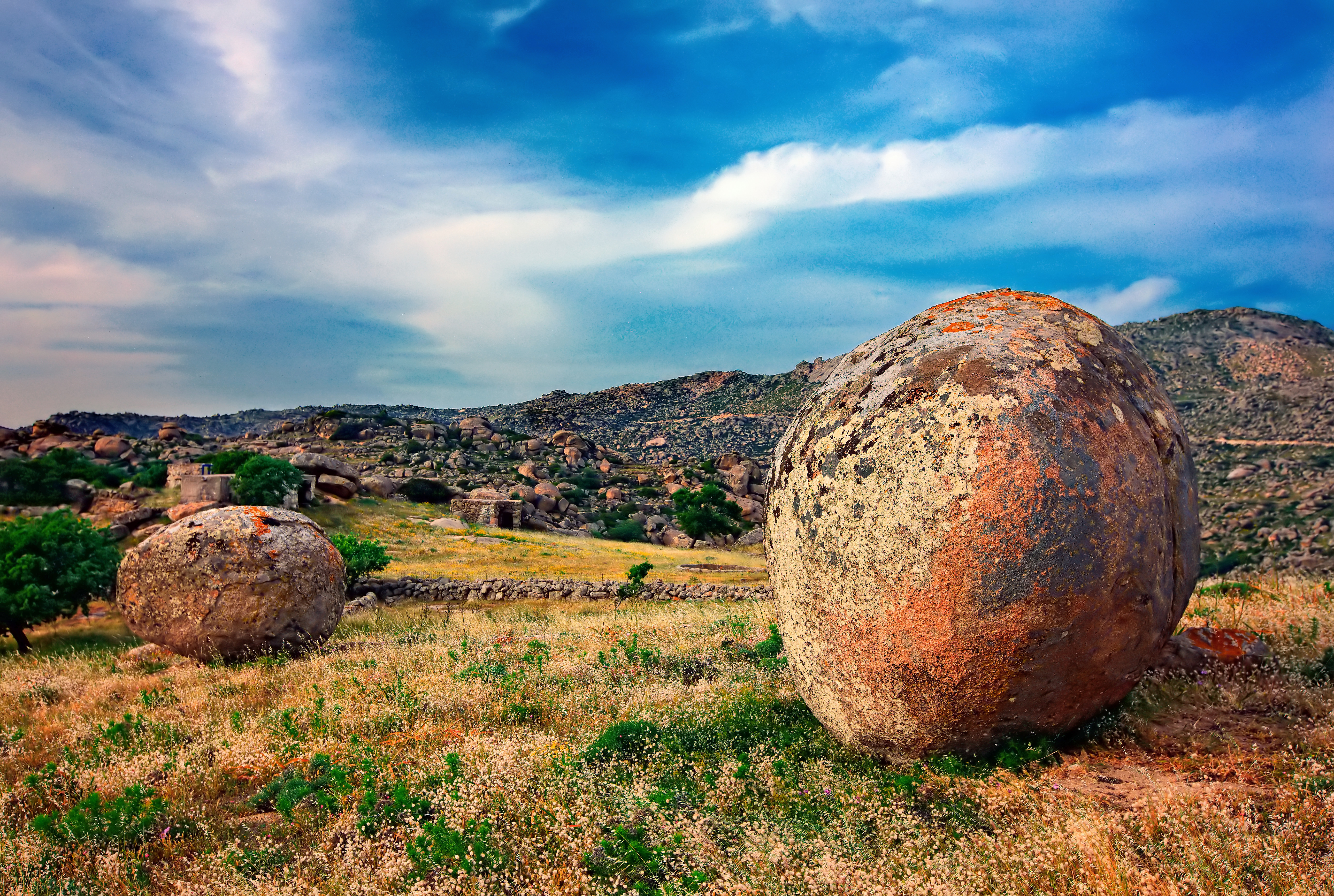 <Sie folgen der Route Nr. 5 von Falatados nach Volax, ein traditionelles Dorf, in dem noch viel Kunsthandwerk betrieben wird. Um den Ort Volax herum, können Sie ein eigentümliches Plateau mit großen Steinen bestaunen, das so aussieht als wären diese Steine von Riesen dort hingeworfen worden. Diese runden Felsbrocken haben verschiedene Größen und sind uralt. Es handelt sich nicht um Meteoriten, vielmehr sind sie das Ergebnis eines geologischen Erosionsprozesses. Es sieht so aus, als wären Sie hier auf dem Mond gelandet. Weiter geht es über ein überraschend grünes Flussbett in das charmante Dörfchen Agapi (wörtlich: Liebe). Sie können nach Komi entweder über einen etwas überwucherten Kalderimi gehen oder über die asphaltierte Straße. Von Komi geht es hinauf in das Dorf Loutra, wo es einige alte und berühmte Klöster gibt. Ein weiterer Aufstieg führt Sie nach Koumaros und von dort geht es bergab zurück nach Falatados. -