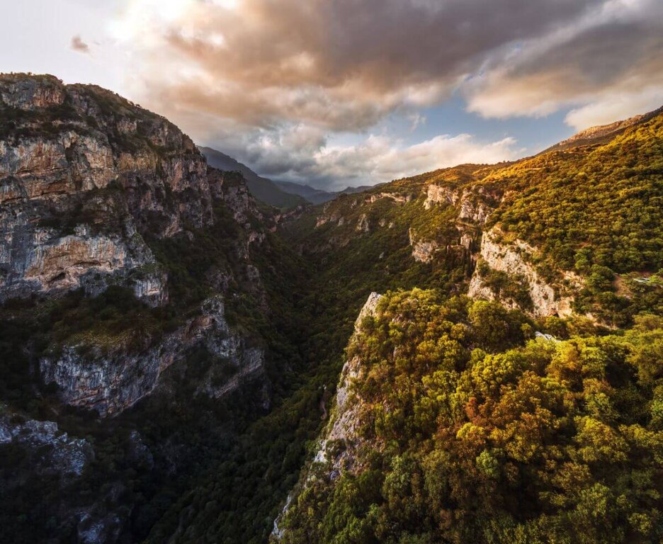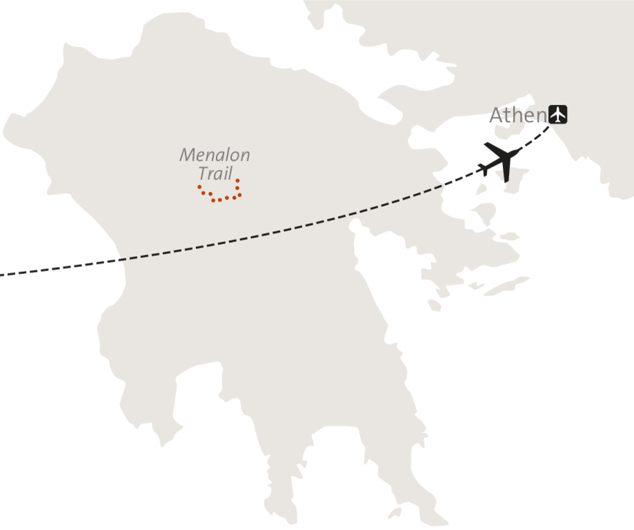 Der Menalon-Trail ist ein 75 Kilometer langer Gebirgstrail in Arkadien, in der Mitte des Peloponnes, der sich durch die Klamm des Flusses Lousios, die westlichen Hänge des Berges Menalo, durch das Tal des Flusses Mylaon und die nordöstlichen Gortynischen Berge entfaltet. Der Menalon-Trail ist der erste zertifizierte Qualitätswanderweg Griechenlands. Der Trail führt durch verschiedene Dörfer und ist Teil eines Wandernetzes, dass von einer Gruppe Ehrenamtlicher, Bergsteiger und Umweltschützern aus Arkadien strukturiert und gepflegt wird. Der Menalon Trail ist in 6 Tagesetappen eingeteilt. Sie wandern durch die beeindruckende Lousios-Schlucht, kommen an Klöstern vorbei und erreichen Dimitsana. Dann geht es weiter über den Pass Bilani und von dort wandern Sie entlang des Flusses Mylaon nach Vytina, berühmt für seinen schwarzen Marmor. Am nächsten Tag wandern Sie teilweise auf dem Menalon Trail in Richtung Nymfasia und übernachten dort in kleinen Häuschen in der Gegend “Mavra Litharia”: Schwarze Steine. Es folgt eine lange Wanderung durch Wälder bis in das Holzfällerdorf Magouliana. Am Fluss Potamia entlang laufend, erreichen Sie Valtesiniko, ein amphittheaterartiges gebautes Dorf. Am letzten Tag wandern Sie durch Felder und Walnussbaumplantagen, an Dreschplätzen und kleinen Hütten vorbei nach Lagkadia. Hier endet der Trail.