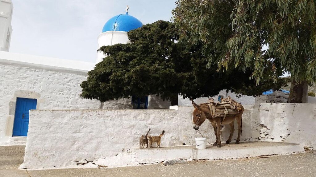 <Die heutige Wanderung ist flexibel: Entweder nehmen Sie ein Taxi hoch nach Chora und laufen dann nach unten oder Sie laufen über eine andere Route hoch nach Chora und nehmen sich ein Taxi zurück nach Katapola oder Sie laufen beide Strecken Katapola-Chora-Katapola. Die Etappe von Katapola nach Chora verläuft über einen schönen und meist intakten Maultierpfad durch ein tiefes Tal in die Hauptstadt von Amorgos: Chora. Diese wunderschöne Stadt beeindruckt durch viele kleine Gassen, lebhafte Plätze und gemütliche Cafés und Tavernen. Nach dem Mittagessen laufen Sie über einen Zickzack-Pfad hinab in Richtung Küste und Meer.