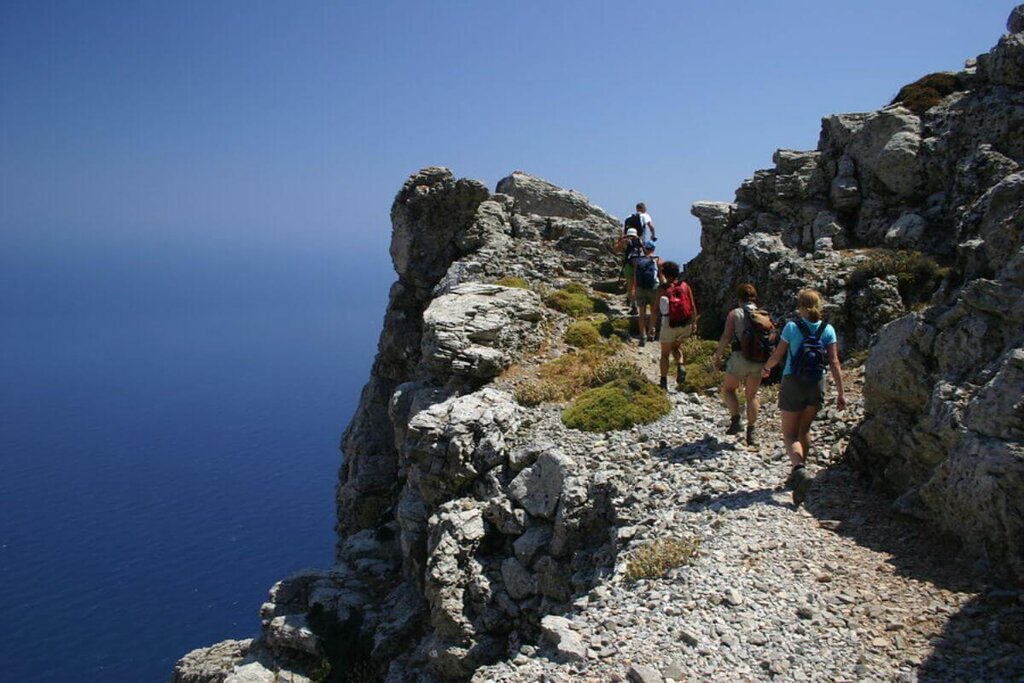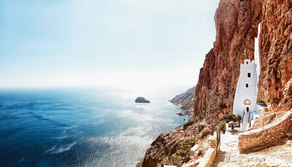 <Sie nehmen sich ein Taxi nach Chora, die Hauptstadt der Insel, zum Startpunkt Ihrer Wanderung. Schon bald kommen Sie zum beeindruckenden Kloster Chozoviotissa, dass sich im wahrsten Sinnes des Wortes an eine Felswand klammert. Über eine jahrhundertalte Route wandern Sie über die Hälfte der Insellänge. Unterwegs kommen Sie an einem verlassen Dorf vorbei und an zahlreichen Kapellen und Sie können die herrliche Aussicht über das Meer zu beiden Seiten geniessen. Von der Ägiali Bucht machen Sie den letzten Aufstieg über einen breiten Maultierpfad in das Dorf Langada, wo sich Ihr Hotel befindet.