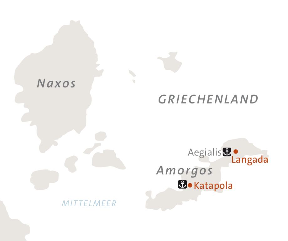 Individuelle Anreise nach Amorgos (möglich mit der Fähre von Santorini, Piräus oder Naxos, nicht inklusive). Wir empfehlen eine Anreise ab Santorini inklusive Vor- bzw. Nach übernachtung auf Santorini, da Sie sonst spätestens 10:30 Uhr am Flughafen auf Santorini ankommen müssten, um die Fähre nach Amorgos zu erreichen. Aufgrund unsicherer Fährzeiten für den Abreisetag empfehlen wir auch hier eine Übernachtung auf Santorini vor Ihrem Heimflug.