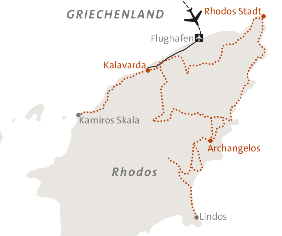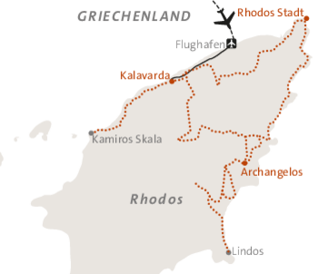 - Sie werden am Flughafen von Rhodos abgeholt und ins Hotel gefahren. Dort erhalten Sie Ihre Räder, wenn gemietet.