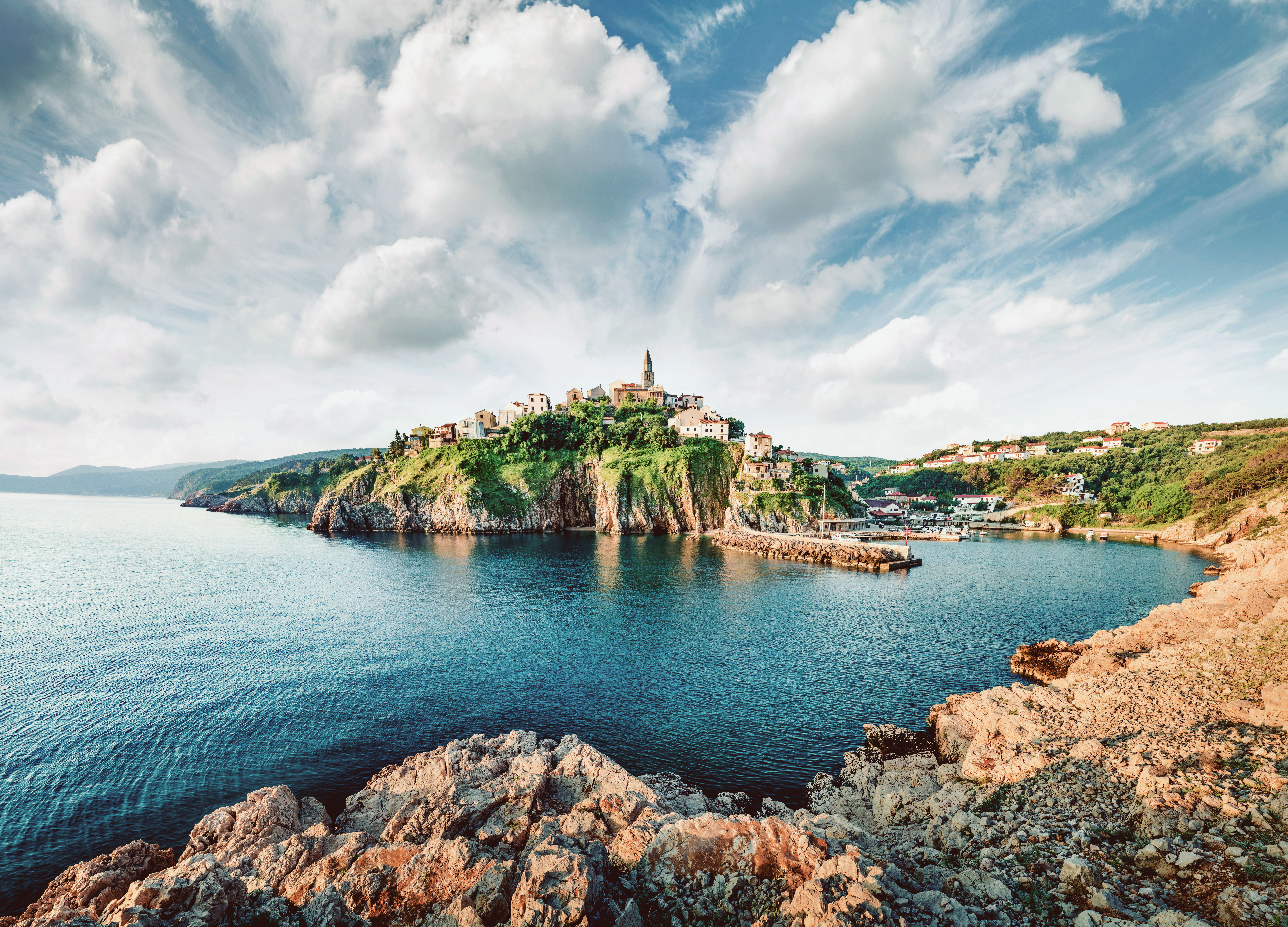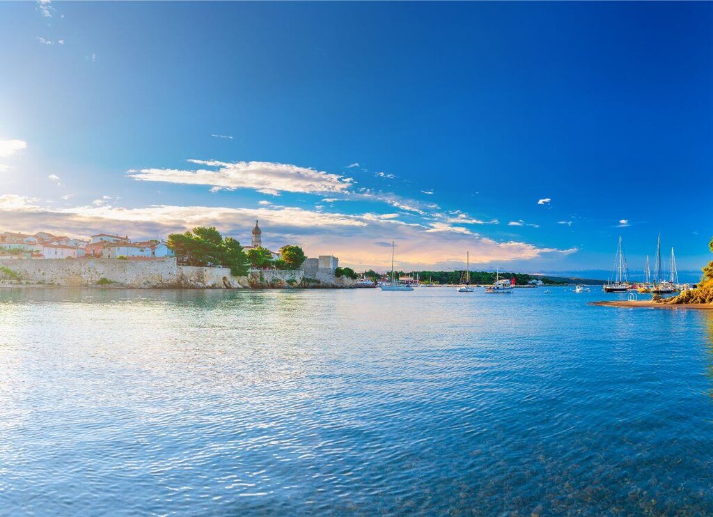 <Der heutige Tag beginnt mit einer Radtour ins Landesinnere nach Čižići und weiter ins alte Städtchen Vrbnik, das auf einem Felsen hoch über der Küste liegt. Der Anstieg wird mit einem tollen Ausblick belohnt! Nach der Mittagspause radeln Sie weiter Richtung Krk. Dort wartet Ihr Schiff bereits im Hafen.