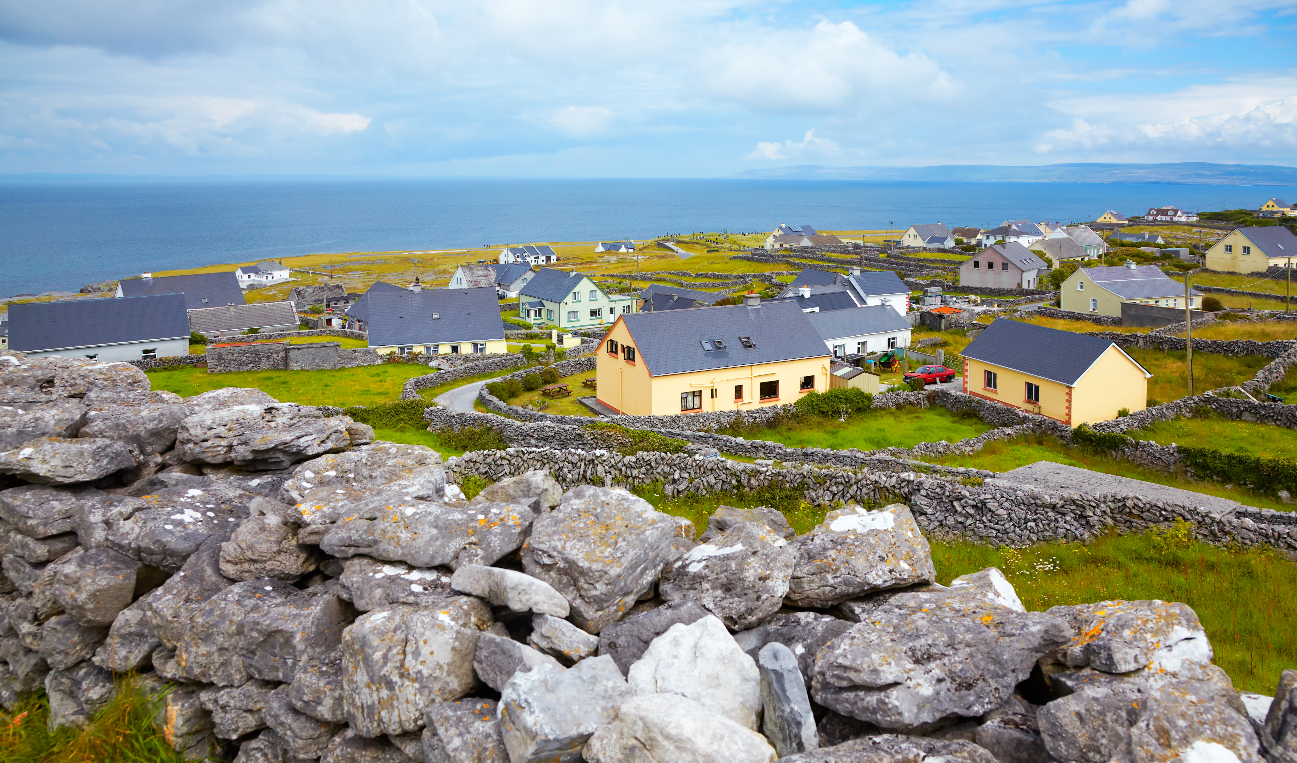 Hier besichtigen Sie Dun Aonghasa, eine der wichtigsten und einzigartigsten prähistorischen Steinfestungen Irlands, die etwa 2.500 Jahre alt ist. Die Festung ist am Rande einer steilen Klippe erbaut und besteht aus hufeisenförmigen Trockensteinmauern, von denen die innere 13 Fuß dick und an manchen Stellen bis zu 18 Fuß hoch ist. Die Aussicht von hier aus ist einfach großartig. Der Weg führt weiter durch eine Wüste aus Kalksteinfelsen, die im Frühjahr und Sommer reich an seltenen Pflanzen ist, durch das Townland von Gort na gCapall (The Field of the Horses) und zurück nach Kilronan, wo Sie Zeit zum Einkaufen und zum Probieren der lokalen Spirituosen in einer der Dorfkneipen haben werden.