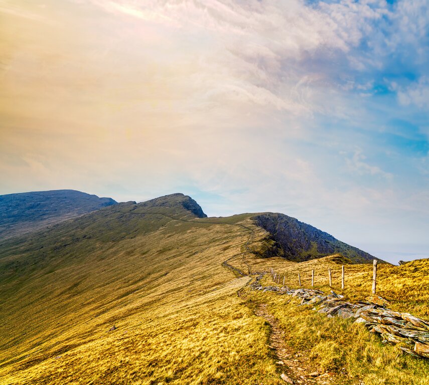 <Individuelle Anreise nach Camp, ein kleiner Ort, malerisch zwischen der Tralee Bay und den Gipfeln der Slieve Mish Mountains gelegen – seit Jahrtausenden ein natürlicher Übergang durch die Berge und heute der Startpunkt deiner Wanderreise.