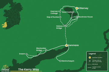 Entdecken Sie den verborgenen Charme der Grafschaft Kerry in Ihrem eigenen Tempo mit unserer Selbstgeführten Kerry Way Comfort-Wanderreise – eine sorgfältig gestaltete Tour, die Abenteuer und Entspannung entlang eines der beliebtesten Fernwanderwege Irlands vereint. Beginnen Sie Ihre Reise in der einladenden Stadt Killarney, wo lebendige lokale Kultur, jahrhundertealte Geschichte und atemberaubende Landschaften zusammenkommen und das perfekte Tor zur „Grünen Insel“ bilden. Diese Comfort-Wanderung ist ideal für Reisende, die ein ausgewogenes Erlebnis suchen – eine Kombination aus gemütlichen Tagesetappen und bereichernden kulturellen Begegnungen – während sie gleichzeitig hochwertige Unterkünfte und perfekt organisierte Logistik genießen. Mit detaillierten Routenbeschreibungen, Insider-Tipps und sorgfältig geplanten Stopps navigieren Sie mühelos durch eine beeindruckende Vielfalt landschaftlicher Highlights, die das wahre Wesen der Grafschaft Kerry offenbaren. Während Sie den Kerry Way in gemächlichem Tempo entlangwandern, enthüllt jeder Schritt eine neue Facette der natürlichen Schönheit Irlands. Schlendern Sie durch sanft geschwungene grüne Hügel und stille Täler, genießen Sie Panoramablicke auf ruhige Seen und entdecken Sie charmante Dörfer, die authentische irische Herzlichkeit ausstrahlen. Ideal für erfahrene Wanderer, die eine leichtere Herausforderung suchen, oder neugierige Reisende, die in die irische Kultur eintauchen möchten, ohne einem strengen Zeitplan zu folgen, verspricht die Selbstgeführte Kerry Way Comfort-Wanderreise ein unvergessliches und stressfreies Abenteuer. Genießen Sie die Freiheit, in Ihrem eigenen Rhythmus zu reisen, tauchen Sie in das reiche Erbe der Grünen Insel ein und schaffen Sie bleibende Erinnerungen entlang einer der ikonischsten Routen Irlands. Wenn Sie diese Region lieber mit einem lokalen Experten erkunden möchten, der Sie in die Geschichte und Natur dieser Gegend einführt – sehen Sie sich bitte unsere Geführte Wanderreise an.
