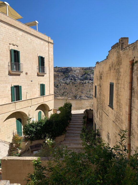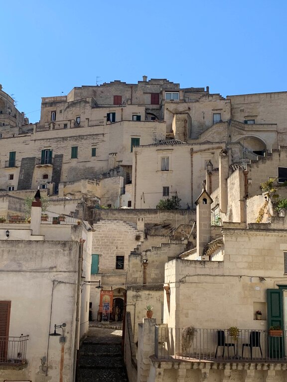 <Anreise nach Matera, berühmt für seine "Sassi" (Höhlenwohnungen), Weltkulturerbe seit 1993.